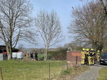 Ermittlungen der Polizei zur Ursache des Brandes in den Lagerhallen eines Bauunternehmens im Salkottener Gewerbegebiet „Berglar“ und Brand im Delbrücker Stadtteil Westenholz.