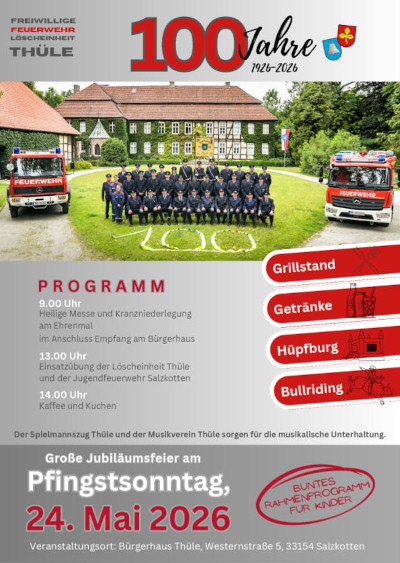 Der Löschzug Lippling der Feuerwehr Delbrück feiert sein hundertjähriges Bestehen mit einem großen Festwochenende von Donnerstag, 30. April, bis Samstag, 2. Mai, auf dem Dorfplatz in Lippling.