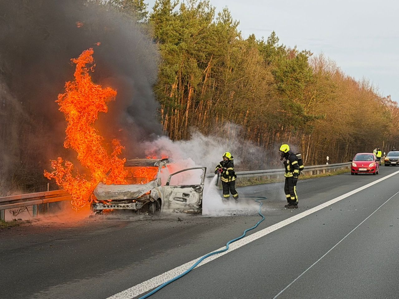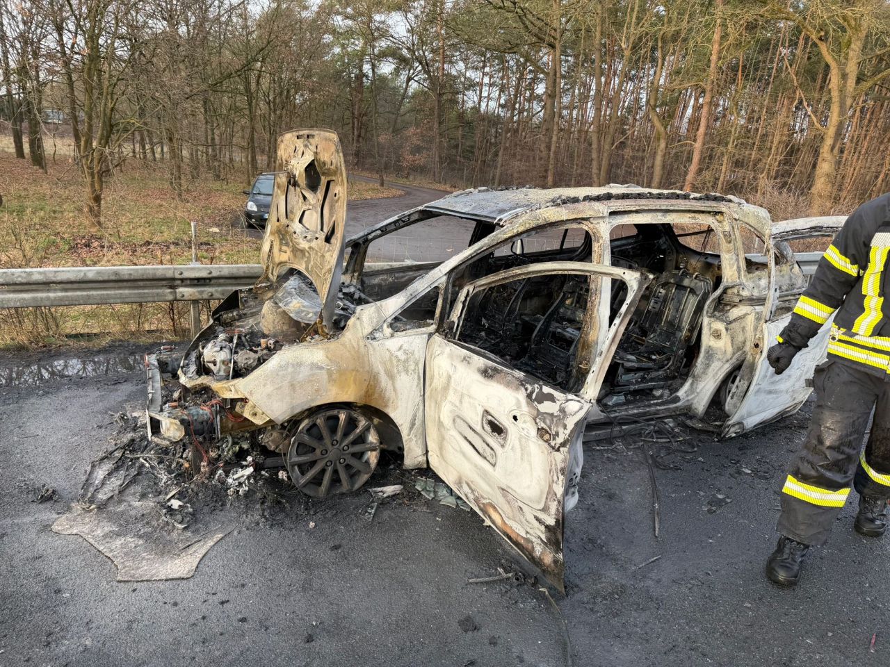 PKW Brand auf der A33 in Fahrtrichtung Brilon.