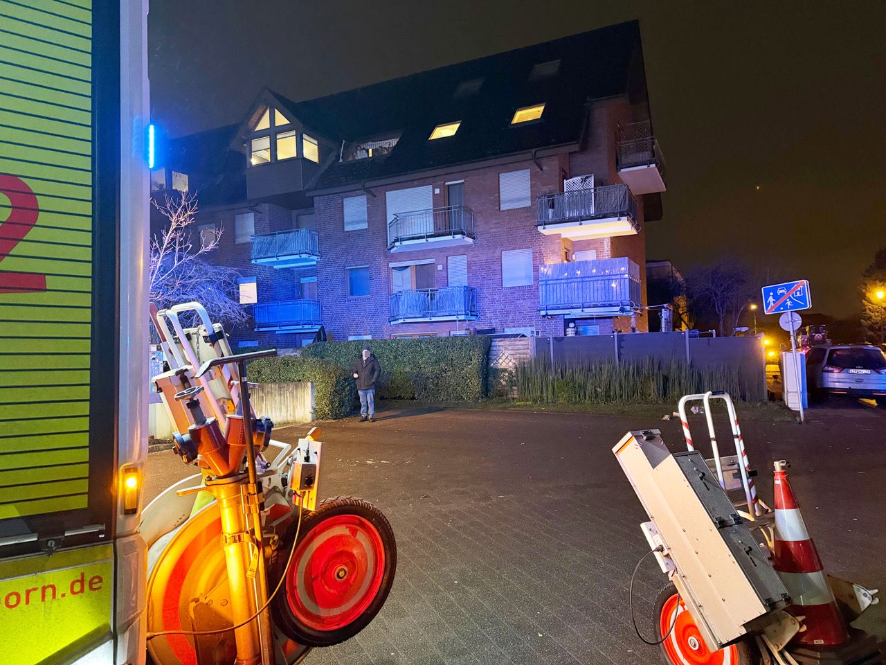 Um 3.10 Uhr am Neujahrsmorgen wurde die Feuerwehr Salzkotten zu einem Brand an einem Wohn- und Geschäftshaus an der Langen Straße im Bereich der Einmündung Tillystraße gerufen. Der Einsatz begann als „unklare Rauchentwicklung“, wurde dann bereits um 3.11 Uhr zu einem Zimmerbrand im Eingangsbereich hochgestuft.