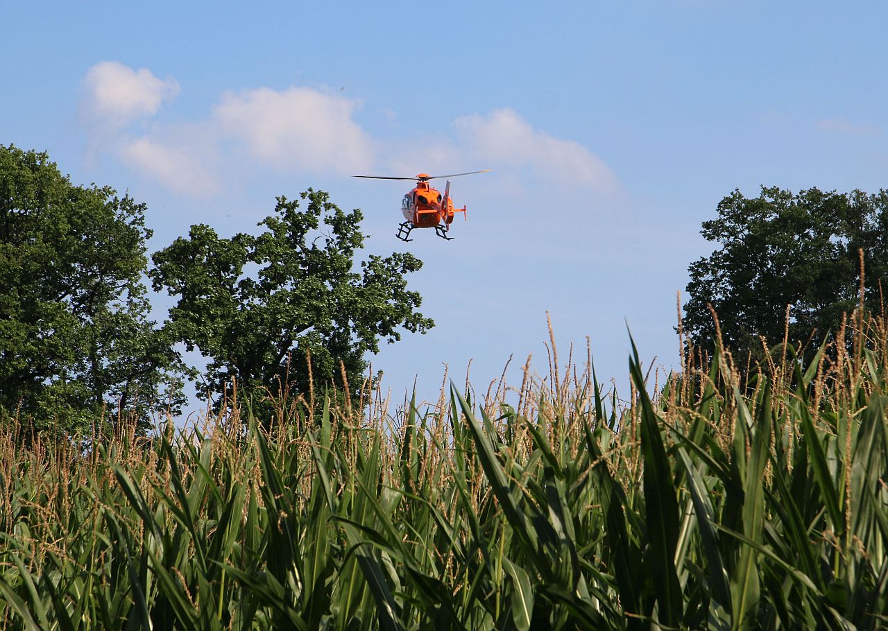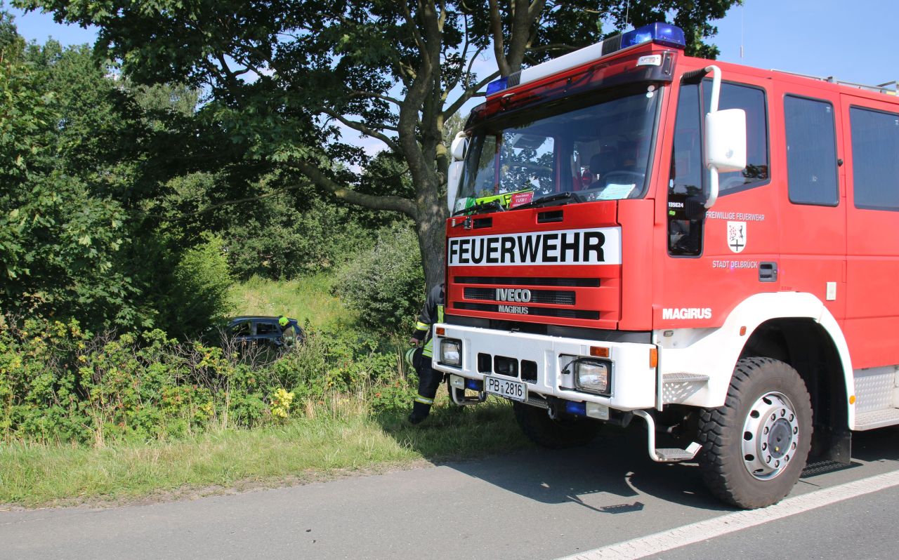 Ein Peugeot Cabrio hat sich am Sonntagmittag auf dem Dahler Weg in Fahrtrichtung Paderborn mehrfach überschlagen und blieb auf einem angrenzenden Getreidefeld auf der Beifahrerseite liegen. Der Fahrer wurde patientenorientiert aus dem Wrack gerettet.