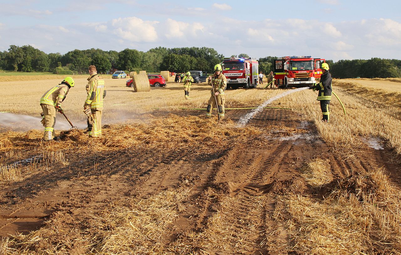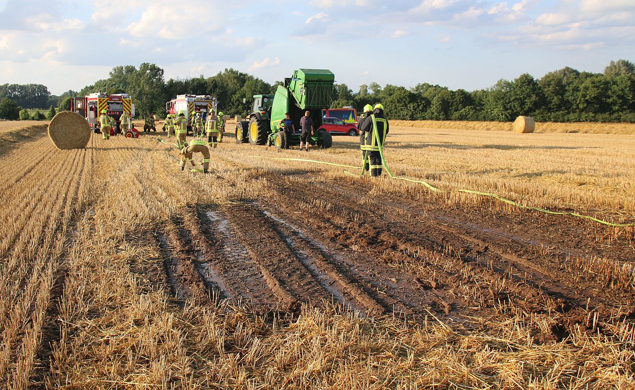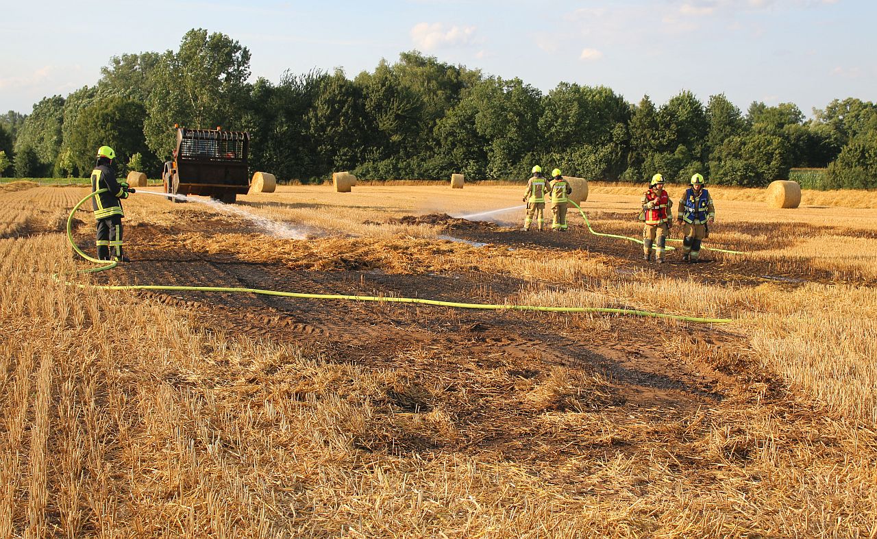 Überhitzte Ballenpresse sorgt für Flächenbrand. „Treckerfahrer hat vorbildlich reagiert“.
