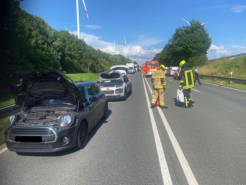 Zwei Auffahrunfälle mit vier Verletzten sorgten am Montagnachmittag für Staus und Umleitungen im Berufsverkehr auf der B64 bei Benhausen.