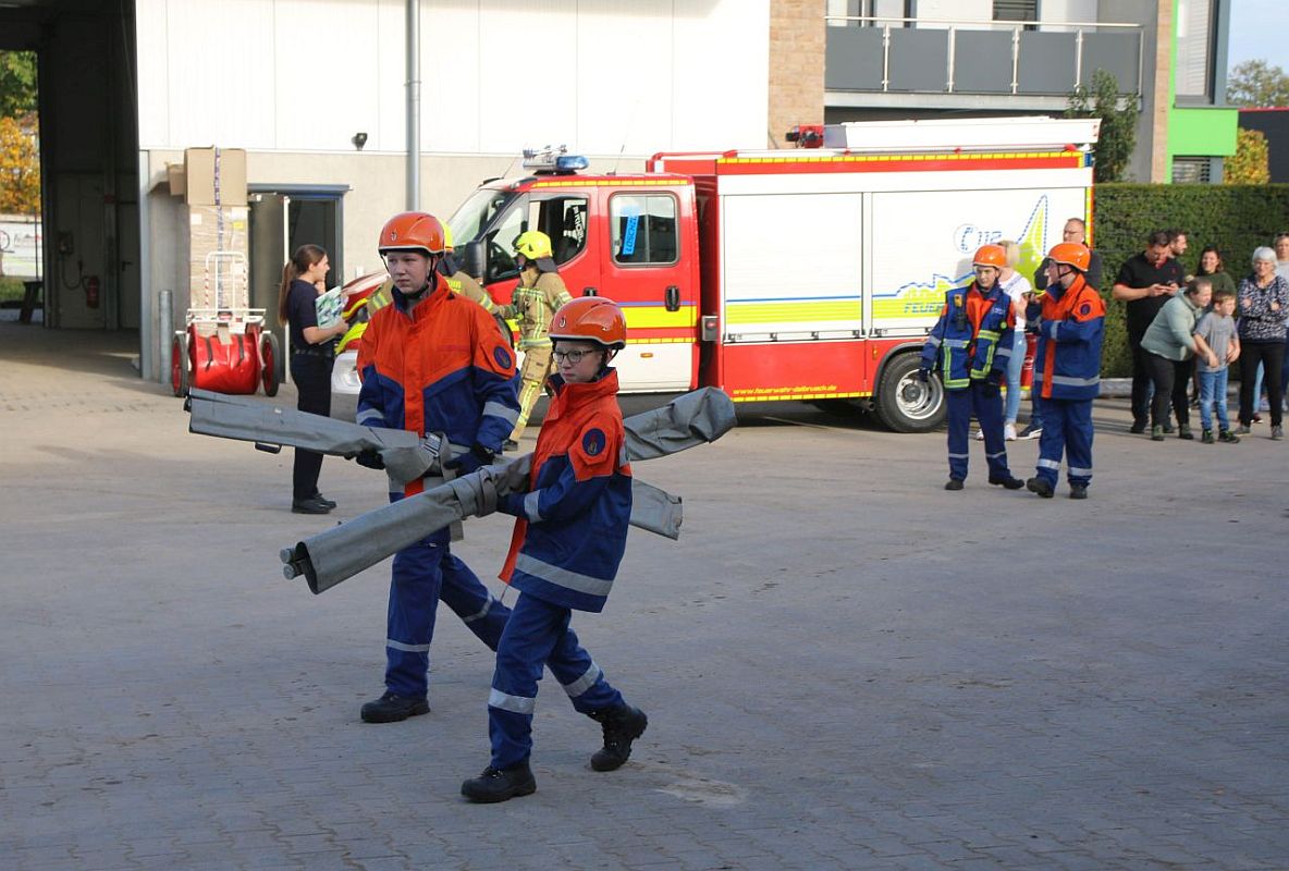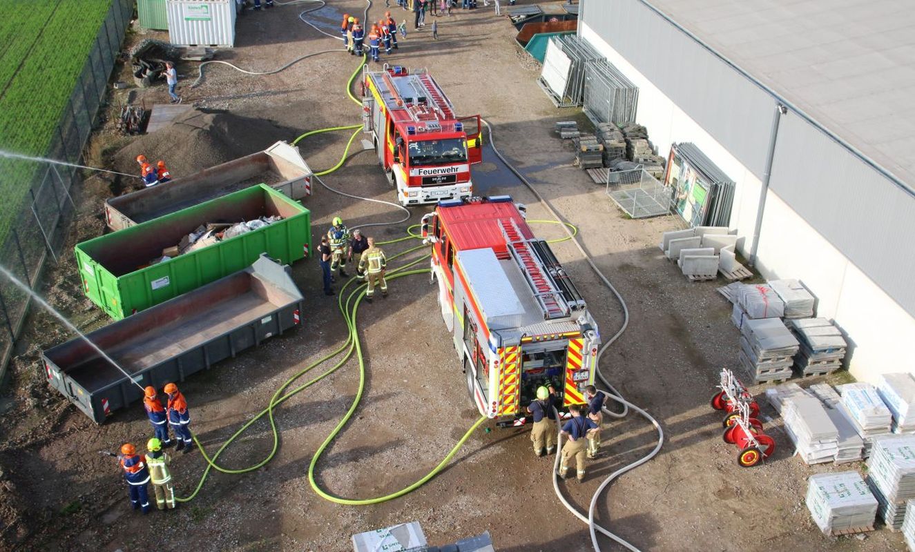 Insgesamt 74 Jugendliche ab 12 Jahren nahmen an der Übung teil. Für einige Löschzüge bildete die Großübung den Abschluss des Berufsfeuertages, für andere war die Übung der Auftakt für ihren Aktionstag. „Unser Dank gilt der Firma Kösters, die uns ihr Firmengelände für die Übung zur Verfügung gestellt hat“, so Claudia Löseke.