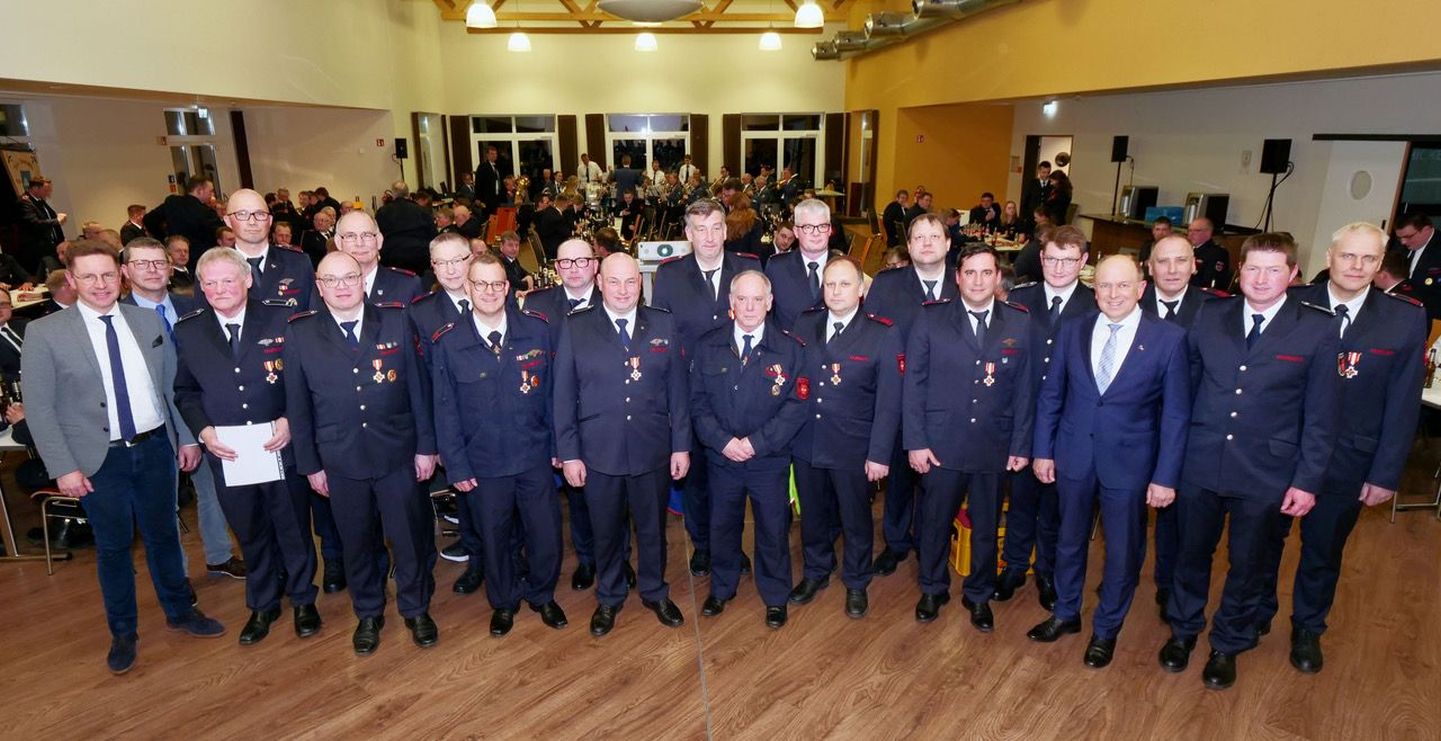 Geehrt wurden mit dem Feuerwehr-Ehrenzeichen in Silber für 25-jährige Mitgliedschaft: Uwe Klein, Martin Franke, Torsten Kulik, Heiko Tischendorf, Manuel Tegethoff, Christian Ewers, Björn Kleist, Philip Morley, Frank Freesmeier, Carsten Berensmeyer, Meinolf Becker und Rainer Strake.