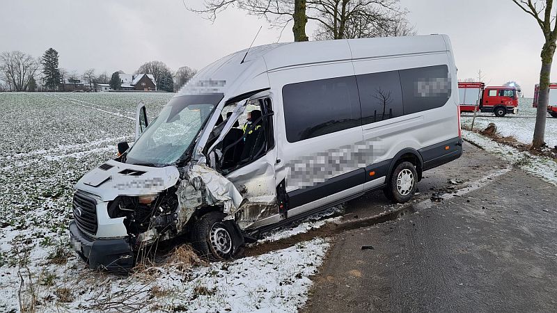 Der Kleinbus streifte einen jungen Straßenbaum und prallte mit der Fahrerseite gegen einen massiven Baum. Das Fahrzeug schleuderte nach rechts über die Straße und kam mit Totalschaden im Graben zum Stillstand. Der Fahrer erlitt leichte und die Beifahrerin (46) schwere Verletzungen. Mit Rettungswagen wurden die Verletzten in Krankenhäuser nach Salzkotten und Paderborn gebracht. Bei der Unfallaufnahme stellten die eingesetzten Polizisten fest, dass einer der Winterreifen am Kleinbus abgefahren war und teilweise kein Profil mehr aufwies. Der Sachschaden wird auf etwa 25.000 Euro geschätzt. Die Sintfeldhöhenstraße war zwischen Hochstraße und Dalheimer Straße bis 08:20 Uhr gesperrt.