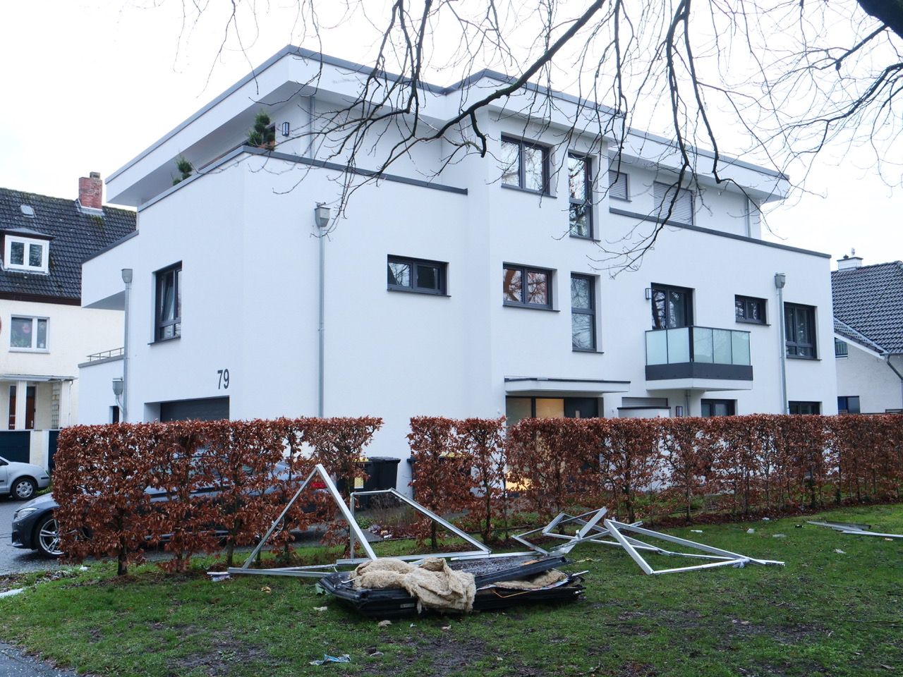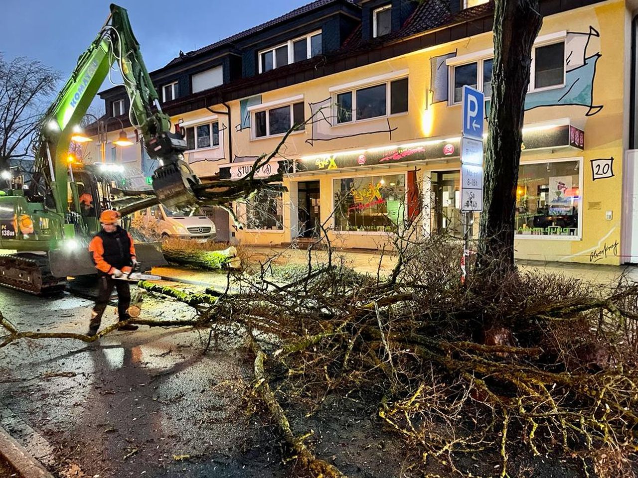 Verletzte gab es bisher zum Glück nicht. Dennoch hatten die Einsatzkräfte die gesamte Nacht gut zu tun: Zahlreiche Mülltonnen flogen umher und verstreuten ihren Inhalt über Straßen und Fußwege, auch Bauzäune und Verkehrszeichen landeten auf den Straßen. Einige Dächer erlitten Sturmschäden. An weiteren Stellen wurden Autos durch Äste und Bäume beschädigt. Am Thuner Weg in Sennelager etwa stürzte ein Baum um und begrub zwei parkende Autos unter sich. Danach ramponierte der Baum den Firstbereich eines Mehrfamilienhauses. Am Rolandsweg verursachte gegen 1.55 Uhr eine vom Dach gewehte Photovoltaik-Anlage einen Schaden von rund 30.000 Euro. Teile der Anlage trafen dabei einen parkenden BMW. Die Trümmer der Anlagen wirbelten auf die Fahrbahn und den angrenzenden Schützenweg.