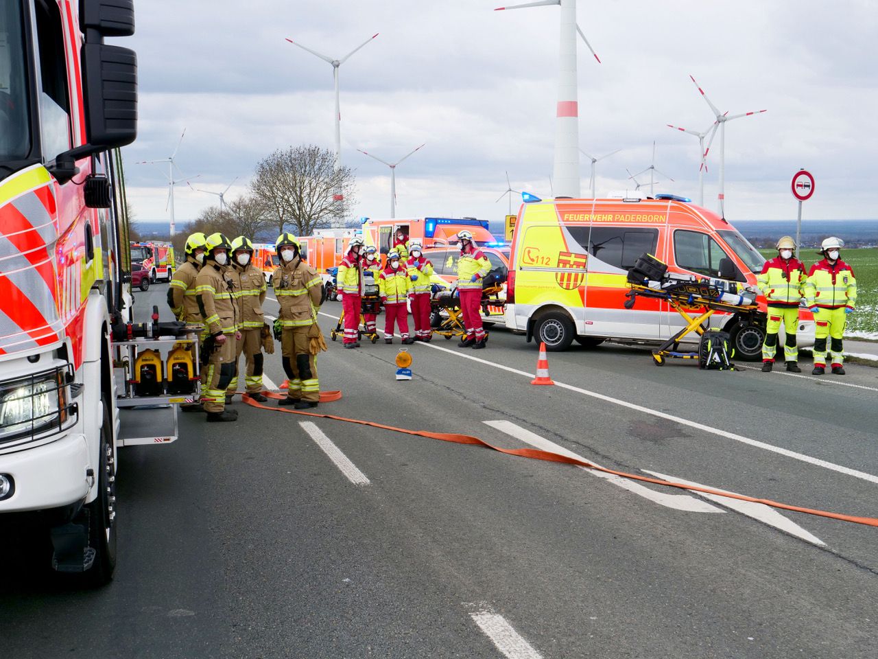 Die Paderborner Feuerwehr und der Rettungsdienst waren jeweils mit rund 30 Kräften im Einsatz. Die Verletzten wurden auch die Krankenhäuser in Paderborn und Salzkotten verteilt.