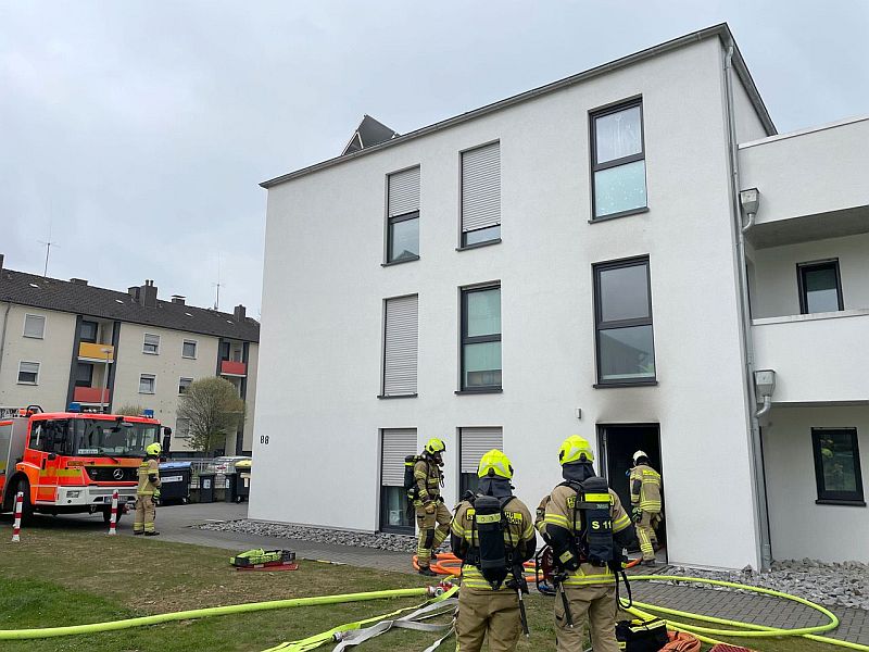 Die Brandbekämpfung erfolgte dann durch Feuerwehrleute unter Atemschutz im Wohnungsinneren. Vorsorglich waren zudem Einsatzkräfte mit Strahlrohren im Außenbereich mit einem weiteren Löschfahrzeug in Stellung gegangen, um für eine mögliche weitere Brandausbreitung gewappnet zu sein. Die Flammen konnten jedoch durch die Trupps im Innenangriff erfolgreich erstickt werden. Ausgegangen war der Brand von einem vermutlich defekten Kühlschrank. Die verbauten Kunststoffe in dem Gerät waren für die starke Rauchentwicklung verantwortlich.