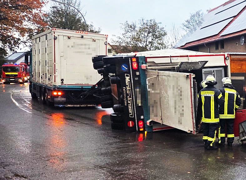 Bei einem Unfall eines Schweinetransporters sind in Bad Wünnenberg-Helmern am Montagnachmittag, rund 90 Schweine in einem Anhänger glimpflich davongekommen.
