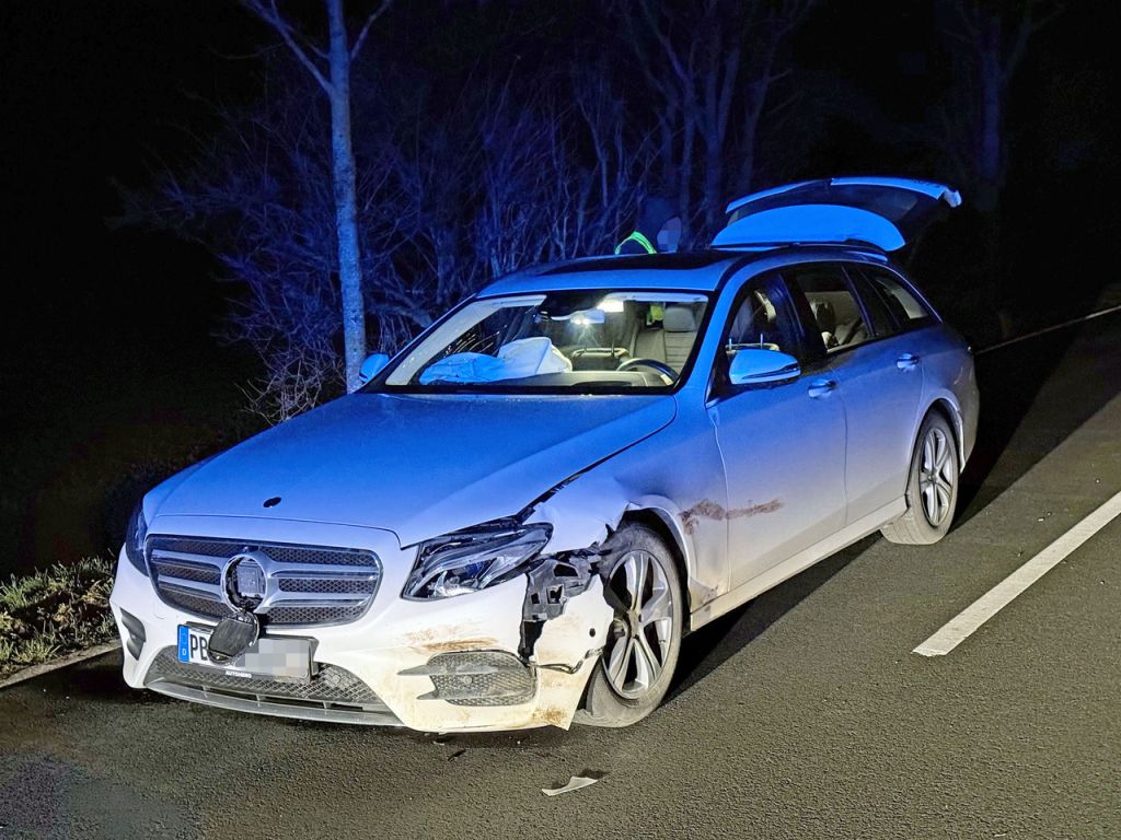 Bei einem Wildunfall im Bürener Land ist am frühen Donnerstagmorgen einen Mercedes der E-Klasse erheblich beschädigt worden. Gegen 3.45 Uhr kollidierte der Wagen auf der Kilianstraße (K16) auf der Fahrt in Richtung des Bürener Stadtteils Brenken mit einem querenden Wildschwein.