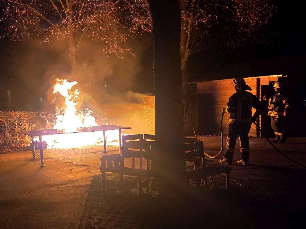 Um 22.04 Uhr alarmierte die Leitstelle nach dem Notruf die Feuerwehr Bad Wünnenberg, die mit zwei Löschfahrzeugen des Löschzugs Haaren zum Schulhof ausrückte. Die Flammen griffen zu dem Zeitpunkt bereits auf eine Hecke über. Durch den schnellen Einsatz der Feuerwehr wurde das Feuer rasch gelöscht.