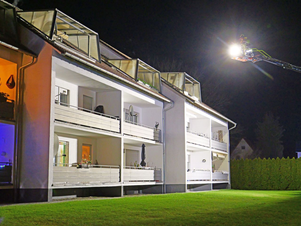 Verschiedene Personen der angrenzenden Wohnungen hatten daher vorsichtshalber das Haus verlassen. Durch die Hitzeeinwirkung platzten so genannte Doppelstegplatten, die als Balkoneindeckung genutzt wurden, beim Abkühlen mit lautem Knall. Sonst entstand kein Gebäudeschaden. Nach rund 40 Minuten und einer eingehenden Kontrolle des Balkons rückte die Feuerwehr wieder ein und die Bewohner konnten in ihre Wohnungen zurückkehren. Die Polizei hat die Ermittlungen zur Brandursache aufgenommen.