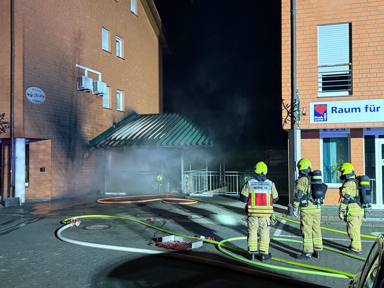 Die Rückmeldung der ersten Feuerwehrkräfte bestätigte den Brand eines überdachten Mülllagers auf der Rückseite eines viergeschossigen Wohn- und Geschäftshauses mit Ladenzeile, das aus insgesamt neun Containern mit einem Fassungsvermögen von jeweils 1,2 Kubikmetern bestand.Das Feuer drohte auf beide Wohnhäuser, die nur durch einen überdachten Zugang getrennt waren, überzugreifen. Sofort war bei den Einsatzkräften von Polizei und Feuerwehr die Brandserie im Riemekeviertel präsent, bei der ab Oktober 2022 mehr als 60 Müllgefäße auf dem Westfriedhof und in angrenzenden Wohnvierteln in Brand gesetzt worden waren.