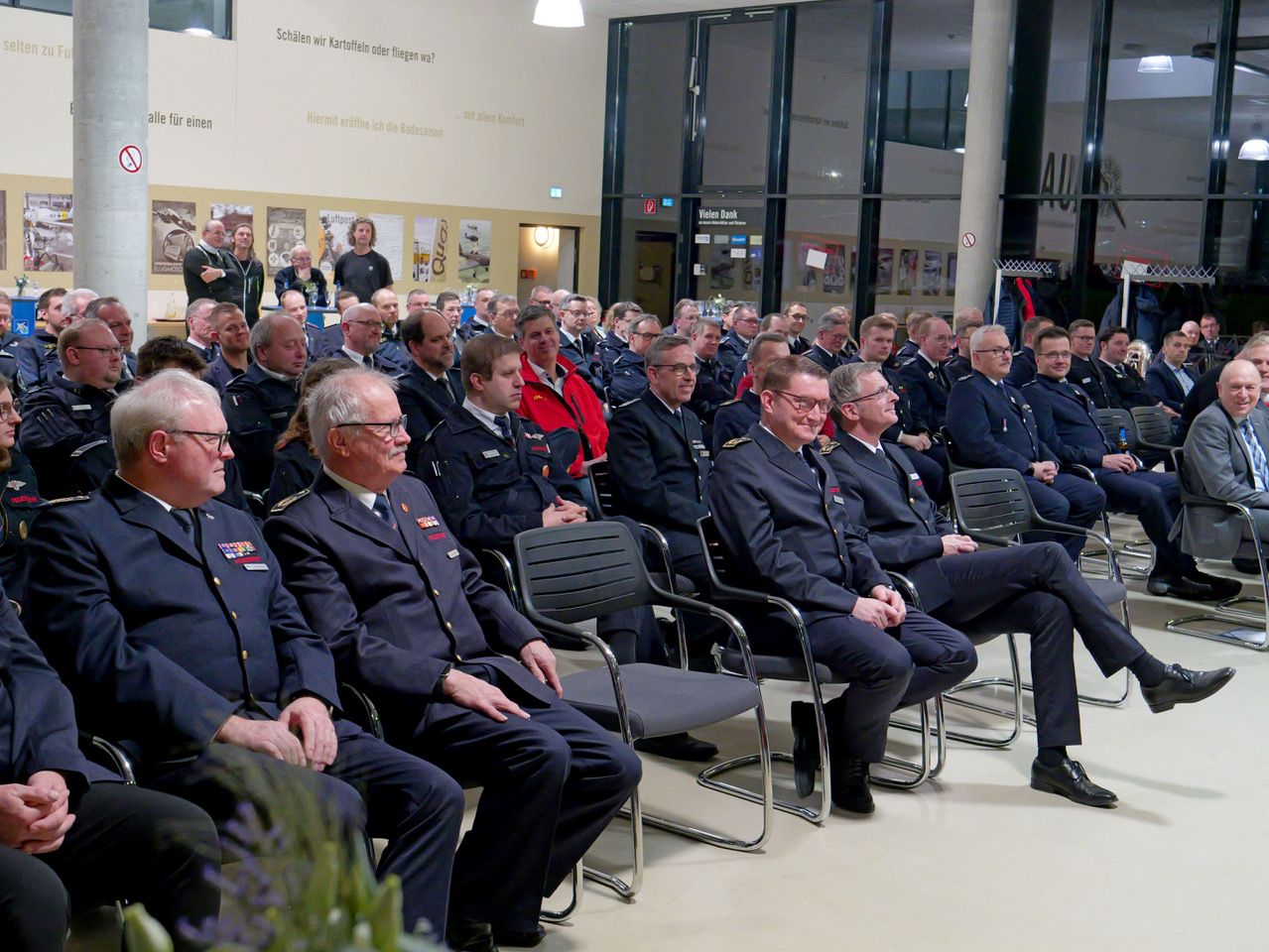Die Brandbekämpfung macht nur noch einen Teil der Arbeit der 3.215 aktiven Feuerwehrleute im Kreis Paderborn aus. Die Hilfe bei Unglücksfällen, Katastrophen und Krisen gewinnt zunehmend an Bedeutung. Dazu kommen neue Aufgaben im Katastrophen- und Zivilschutz, die im Wesentlichen von den Feuerwehren und Hilfsorganisationen getragen werden müssen. Ohne flächendeckenden Katastrophenschutz sei das unleistbar, betonte Stephan Reckhaus, Vorsitzender des Verbandes der Feuerwehren (VdF) im Kreis Paderborn und zugleich Kreisbrandmeister, beim Neujahrsempfang der Feuerwehren, der am Montagabend erstmals im Quax-Hangar am Flughafen Paderborn/Lippstadt stattfand. Für den musikalischen Rahmen sorgte der Musikzug Buke der Feuerwehr Altenbeken.