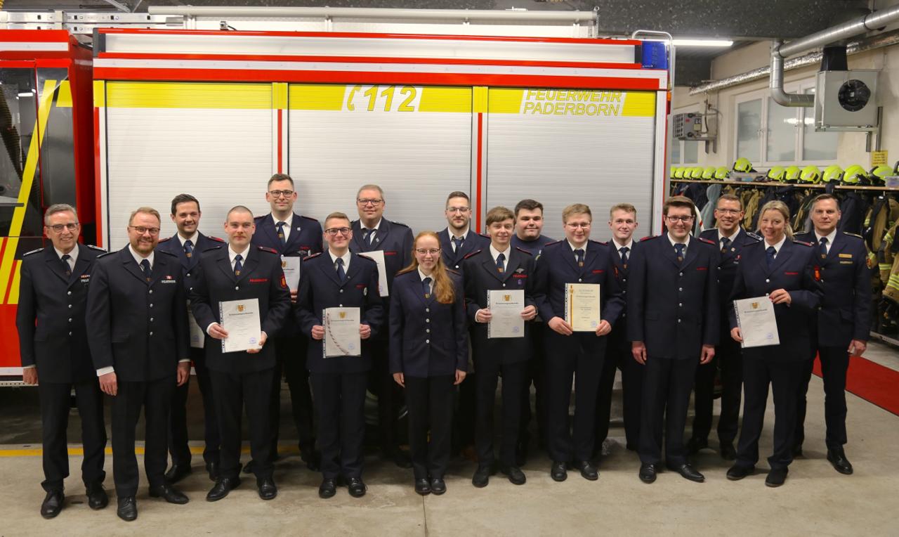 Im Rahmen der Versammlung wurden zahlreiche Beförderungen ausgesprochen. Zum Feuerwehrmann wurde Mike Maverick Shelton befördert. Den Dienstgrad des Oberfeuerwehrmanns erhielten Roland Hachmann, Dominik Rinn und Jan Fehring.Marcel Hardes wurde zum Hauptfeuerwehrmann ernannt. Zum Unterbrandmeister wurden Adrian Nessel und Maximilian Koch befördert. Timon Brockmeier erhielt die Ernennung zum Brandmeister, Veronika Simon zur Oberbrandmeisterin. Fabian Fahle, Mitglied der Löschzugführung, wurde zum Brandinspektor ernannt. Darüber hinaus wurde Kai Schichel in die Funktion des Gerätewarts berufen. Patrick Riemer übernimmt künftig die Aufgaben des Sicherheitsbeauftragten im Löschzug.Die Funktion der Schriftführung wurde viele Jahre durch unser Kameradin Veronika Simon ausgeübt. Hier wurde Laura Riddle durch die Versammlung als Nachfolgerin gewählt. Die Versammlung dankte Veronika Simon für ihr geleistetes Engagement.
