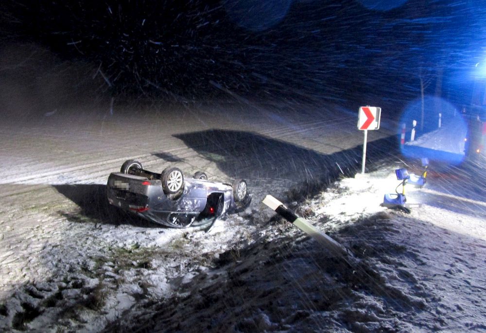 Bei einem Verkehrsunfall in der Nacht zu Montag kam ein mit fünf Personen besetzter Renault auf der Landstraße 636 auf der Fahrt von Haaren in Richtung Fürstenberg von der Straße ab und blieb in einem angrenzenden Feld auf dem Dach liegen.