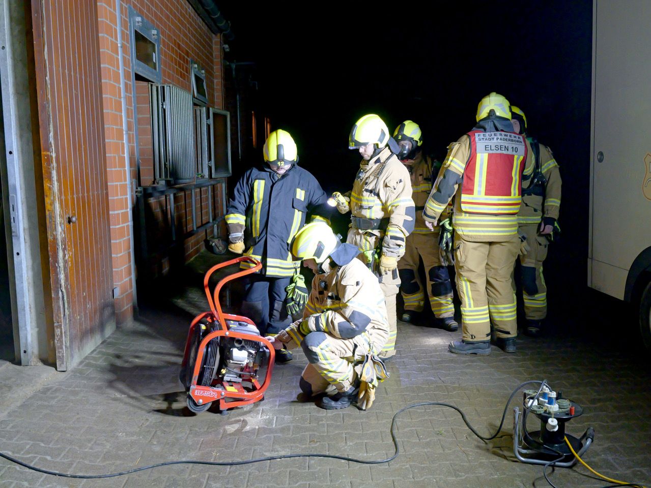 Um 21.16 Uhr alarmierte die Leitstelle des Kreises nach einem Notruf aus dem Betrieb unter dem Stichwort „Bauernhofbrand“ mit dem Meldebild „Brennt Pferdestall“ die Feuerwehr Paderborn umgehend mit den beruflichen Kräften der Feuer- und Rettungswachen Nord und Süd zur Brandstelle zwischen Kleestraße und Salzkottener Straße ausrückte. Ebenfalls brachen die Ehrenamtlichen der Einheiten Wewer, Elsen und Stadtmitte mit starken Kräften Richtung des Betriebs auf, in dem auch eine Hengststation untergebracht ist. Die ebenfalls alarmierte Einheit Stadtheide besetzte die verwaister Wache Nord. Der Rettungsdienst war mit drei Rettungswagen und einer Notärztin an der Einsatzstelle.