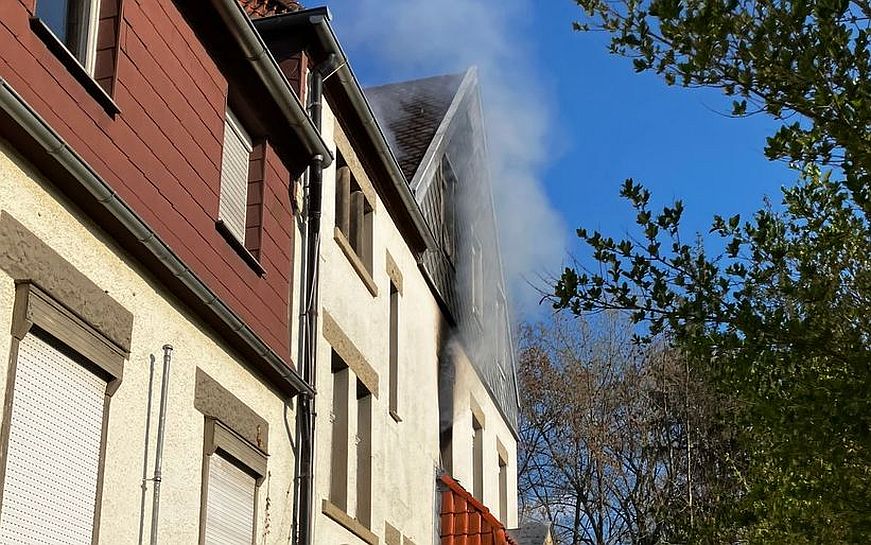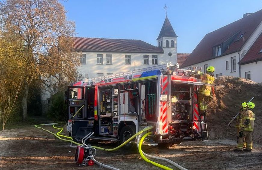 Paderborn. Bei Eintreffen der Feuerwehr wurde ein ausgedehnter Brand im 1. OG des Gebäudes festgestellt. Dieser hatte sich zwischenzeitlich schon auf die darüber liegenden Geschosse im Dachbereich ausgebreitet. Ein Trupp des Defence Fire & Rescue Service und zwei Trupps der Feuerwehr Paderborn gingen unmittelbar in das Gebäude zur Brandbekämpfung vor. Gleichzeitig wurde die Löschwasserversorgung über mehrere Hydranten sichergestellt und auf der Rückseite des Gebäudes eine Drehleiter in Stellung gebracht.