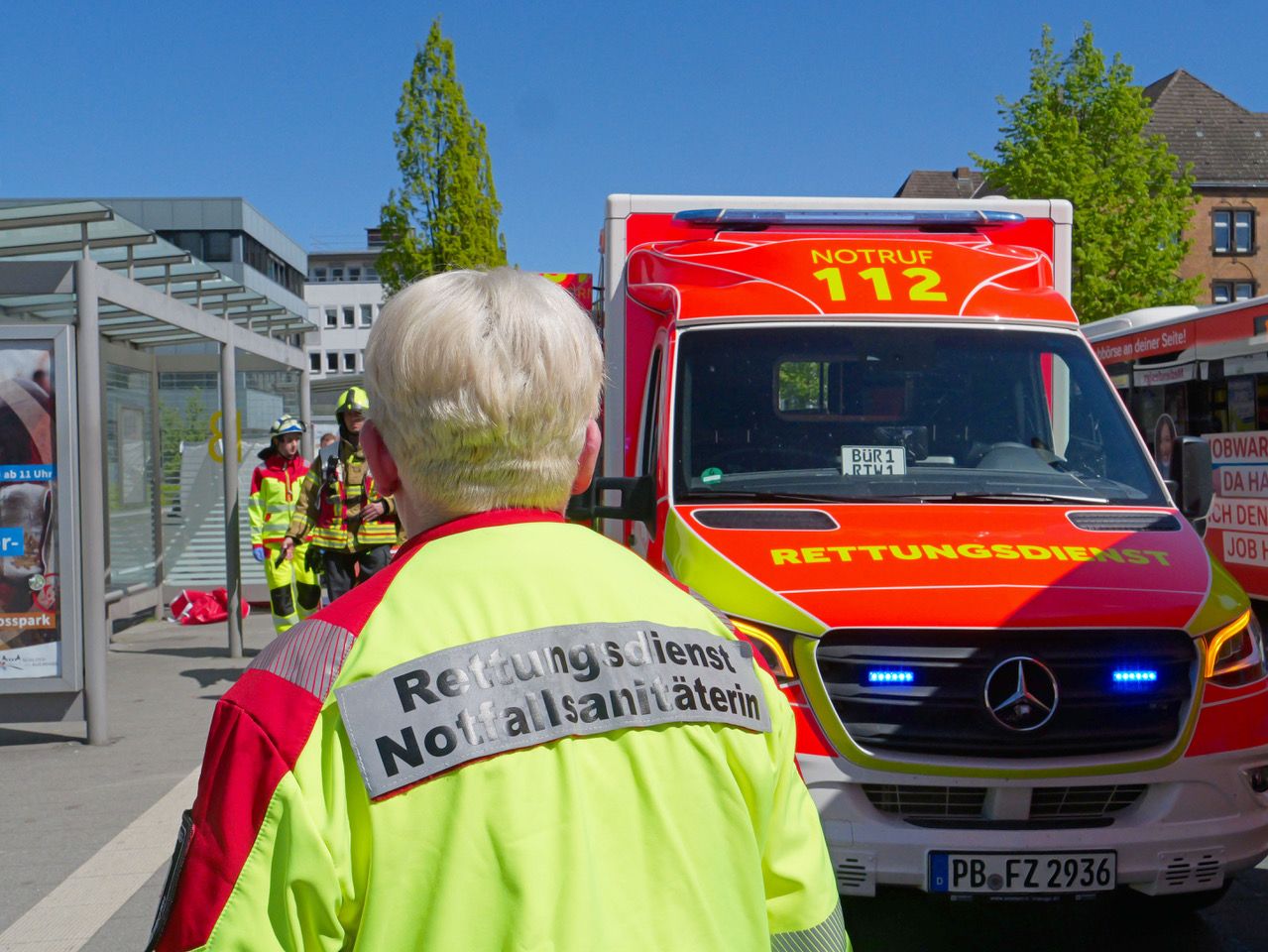 Um 13.20 Uhr alarmierte die Leitstelle des Kreises unter dem Stichwort „Verkehrsunfall, eingeklemmte Person, Kind unter Bus“ die Feuerwehr Paderborn, die umgehend mit den beruflichen Kräften der Feuer- und Rettungswache Süd und den Ehrenamtlichen der Einheit Stadtheide zur Bahnhofstraße ausrückte. Der Rettungsdienst war mit dem Paderborner Notarzt und zwei Rettungswagen aus Büren und Bad Wünnenberg im Einsatz, berichtet Feuerwehr-Einsatzleiter Sebastian Winter.