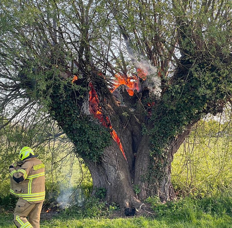 Paderborn-Elsen. Auf einer Freifläche in der Nähe der Straße „Zum Rottberg“ brannte ein Baum. Die Brandbekämpfung wurde zunächst mit Wasser eingeleitet. Aufgrund der starken Verwachsung und zahlreicher Hohlräume im Baum gestalteten sich die Löscharbeiten jedoch sehr aufwändig. Der Brand hatte sich bereits tief ins innere der Weide gefressen, sodass zusätzlich Schaummittel eingesetzt wurde. Mehrere Trupps unter Atemschutz waren im Einsatz, um alle Glutnester abzulöschen.