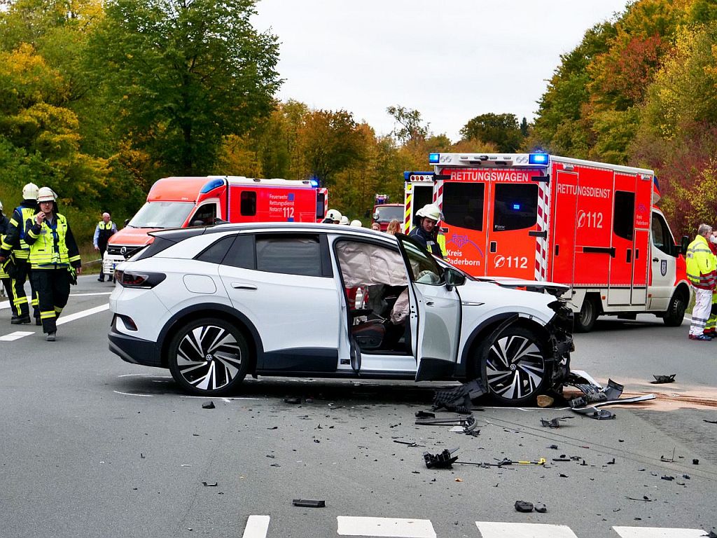 Großeinsatz für Rettungsdienst und Feuerwehr: Bei einem Verkehrsunfall auf der Husener Straße (L 817) in Höhe des Lichtenauer Stadtteils Holtheim wurden am Freitagmittag alle fünf Insassen verletzt, zwei von ihnen schwer, so die Einschätzung der Ärzte.