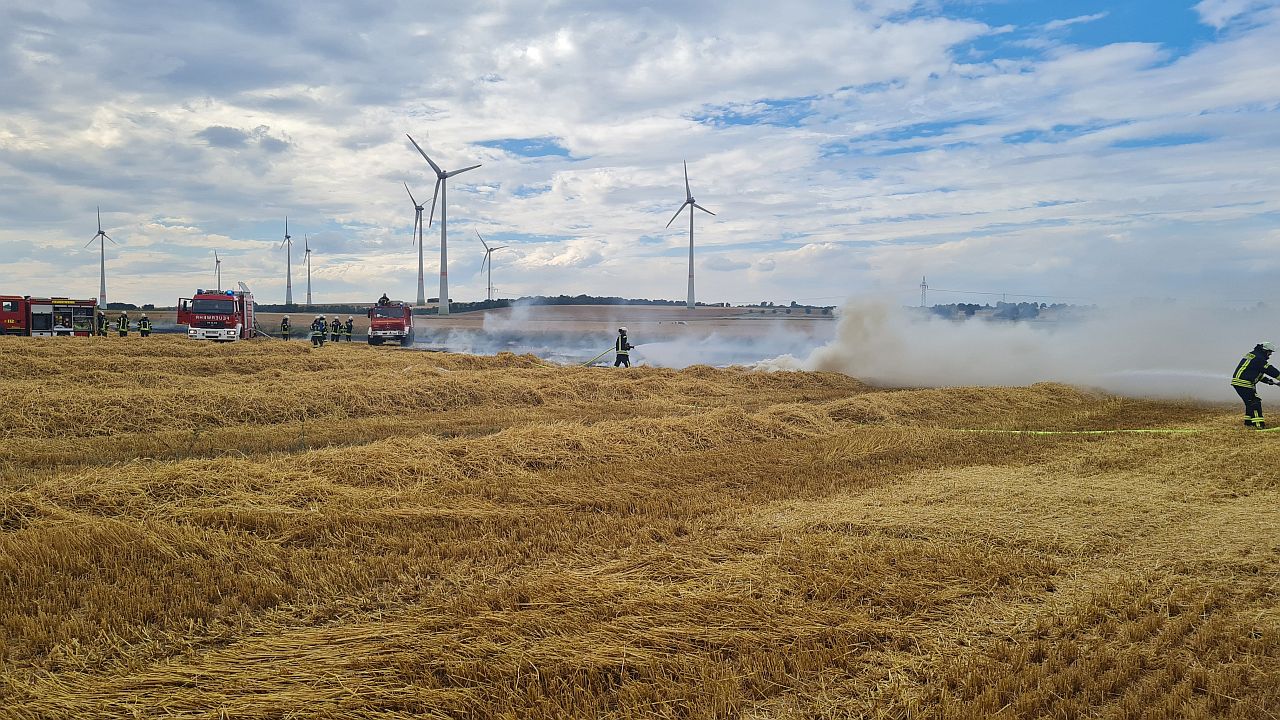 Zu einem ausgedehnten Vegetationsbrand rückten am Dienstagabend rund 70 Feuerwehrleute in den Stadtteil Westenholz aus. Dort standen gegen 19.30 Uhr abgemähte Getreidefelder in einer Größenordnung von rund 4.000 Quadratmetern in Brand. Auch ein Mähdrescher wurde ein Opfer der Flammen.