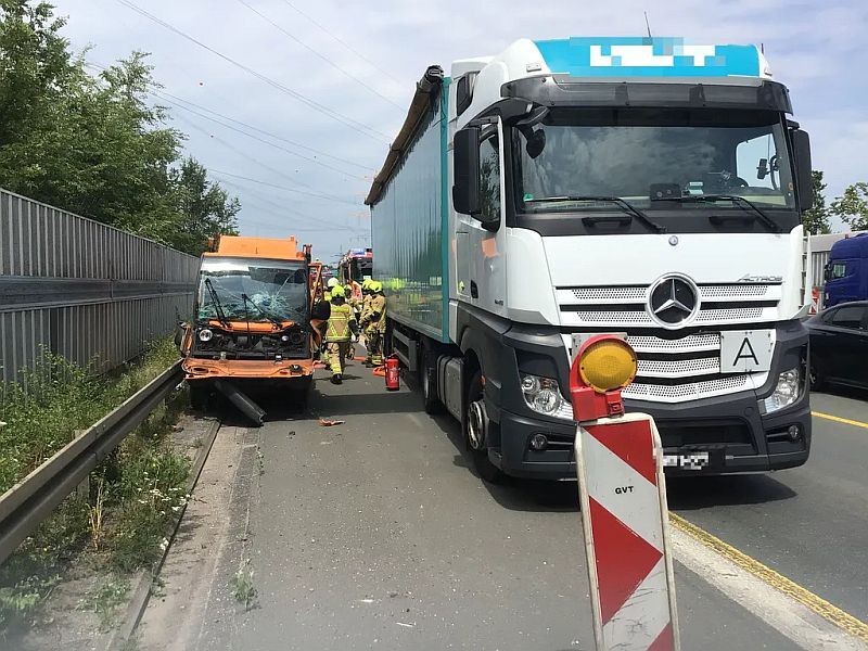 Unfall an der Abfahrt Elsen – Feuerwehr befreit Fahrer. Lkw stoßen auf der A33 zusammen.