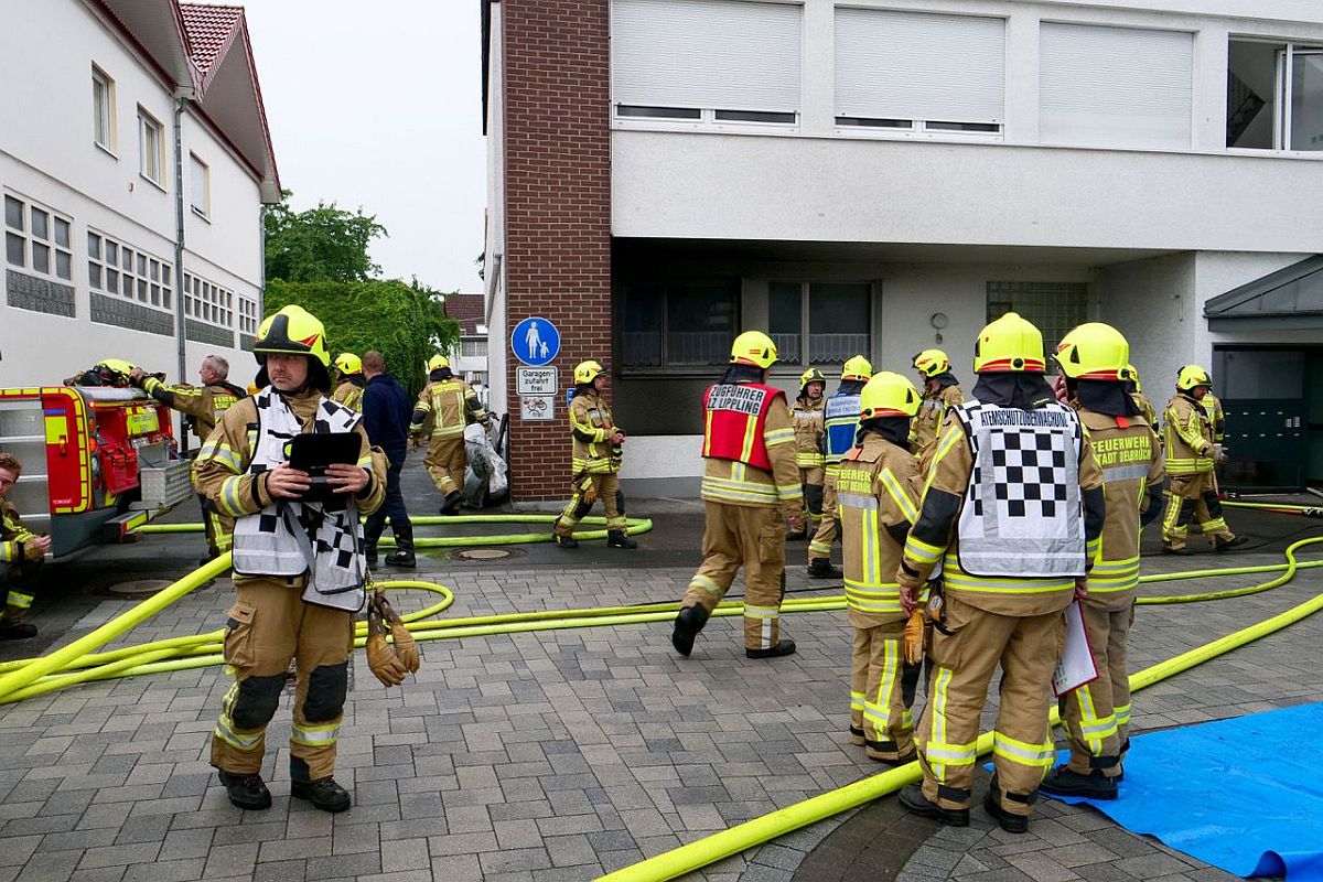 Feuerwehr rettet Bewohner eines Wohn- und Geschäftshauses in Delbrücks Innenstadt. Kellerbrand an der Langen Straße sorgt für enorme Rauchentwicklung.