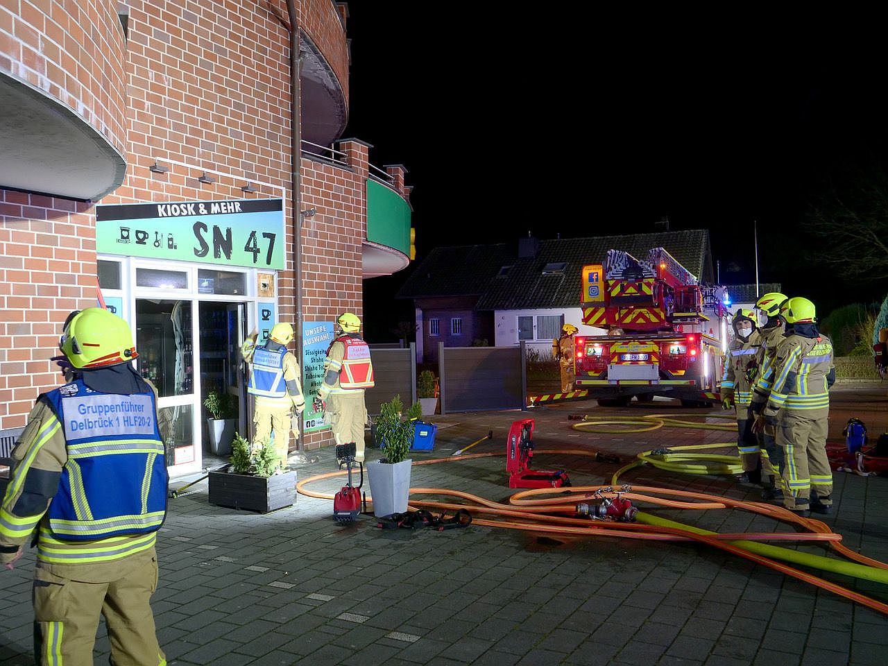 Großer Einsatz für die Delbrücker Feuerwehr am Samstagabend: In einem Kiosk in einem Wohn- und Geschäftshaus an der Einmündung Südstraße/Boker Straße war ein vergessener Heizlüfter in Brand geraten und hatte für eine immense Hitzeentwicklung gesorgt und eine starke Verrauchung ausgelöst.