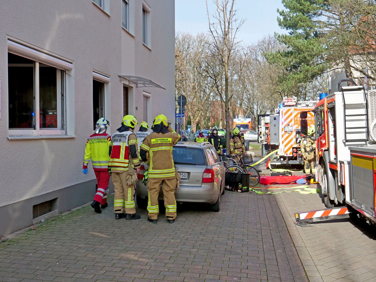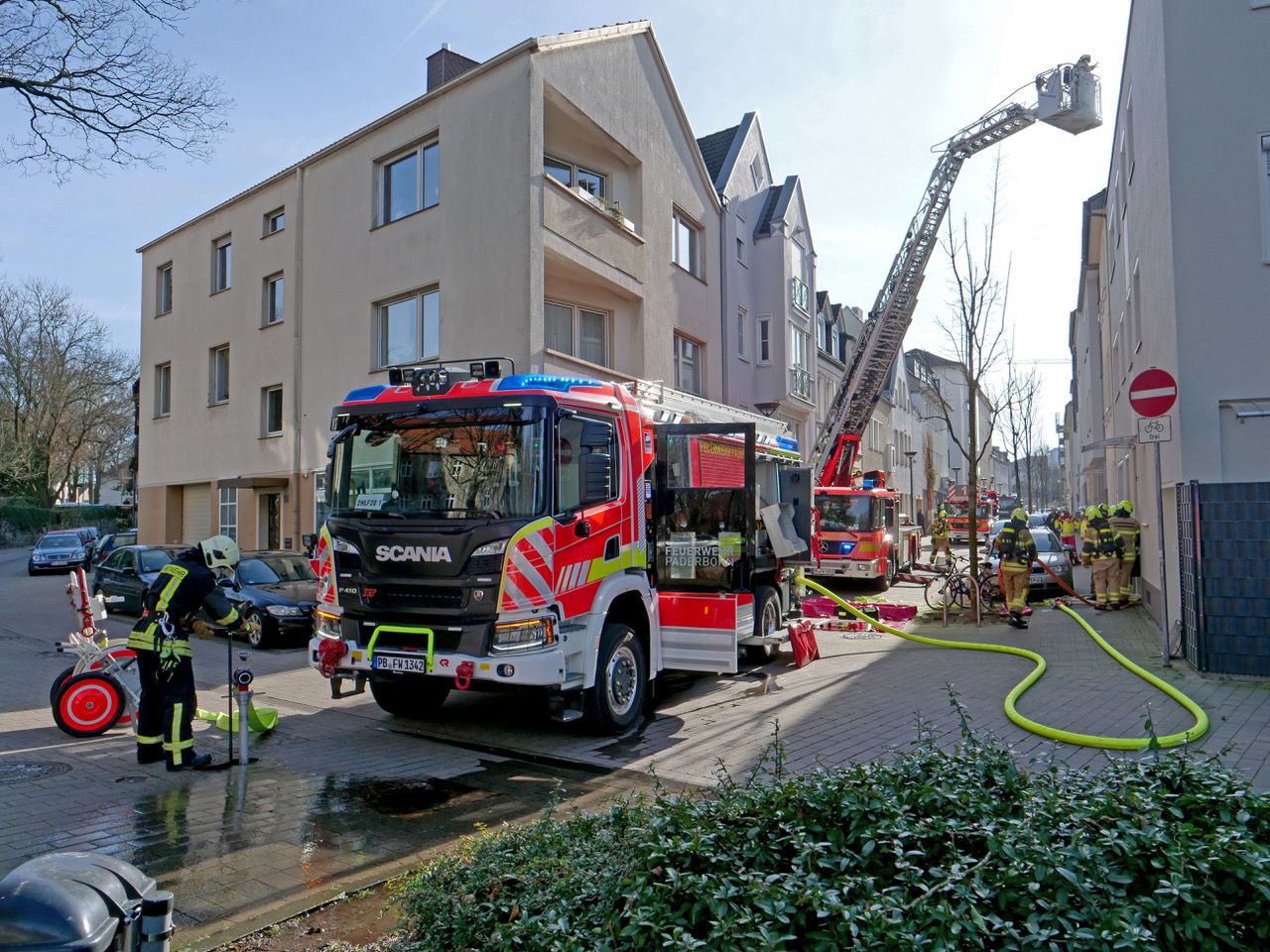 Die beruflichen Kräfte der Wachen Nord und Süd sowie die Ehrenamtlichen der Einheit Stadtheide der Feuerwehr Paderborn sind am Sonntagmittag in der Meinwerkstraße im Einsatz gewesen. In einem Mehrfamilienhaus war es zu einem Küchenbrand gekommen. Ein Hausbewohner wurde von der Feuerwehr mit Hilfe einer Fluchthaube gerettet.