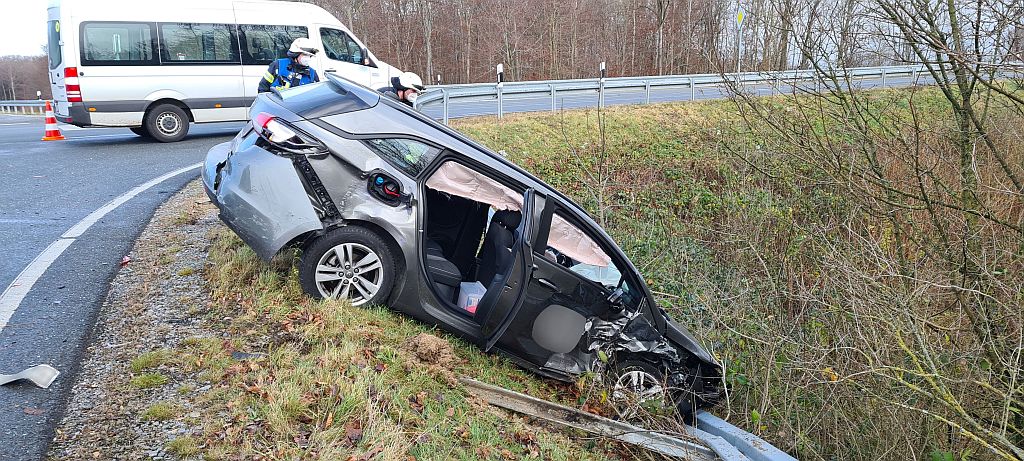Nach einem Verkehrsunfall im Bereich der Haxtergrundbrücke ist die Bundesstraße 68 am Freitagnachmittag komplett gesperrt worden.