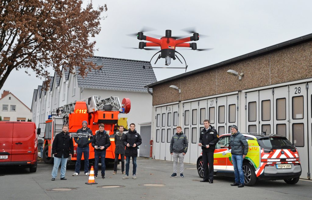 Schneller als die Feuerwehr. Die Drohne hebt ab an der Feuerwache Nord und ist kurze Zeit später am Einsatzort.