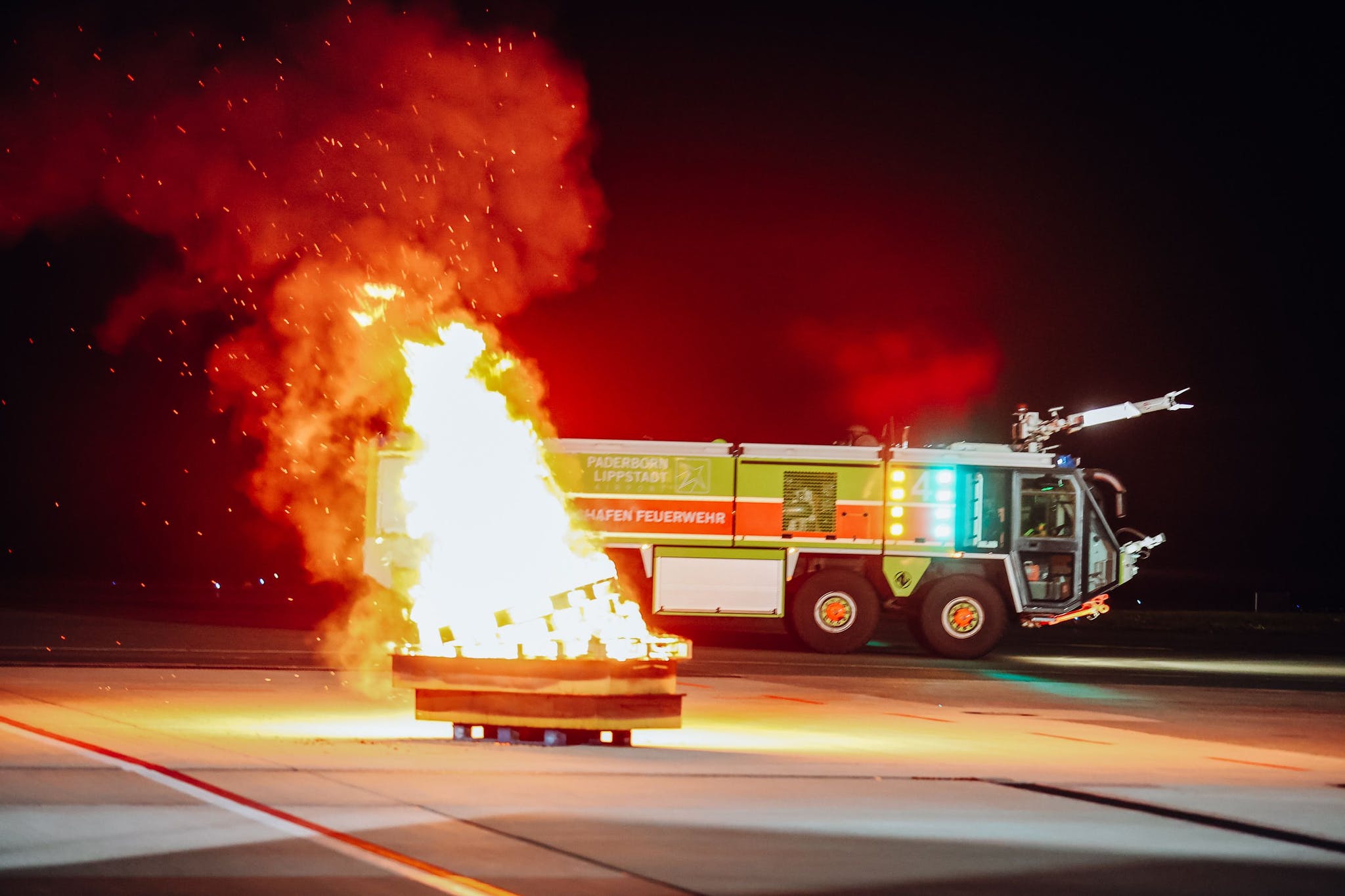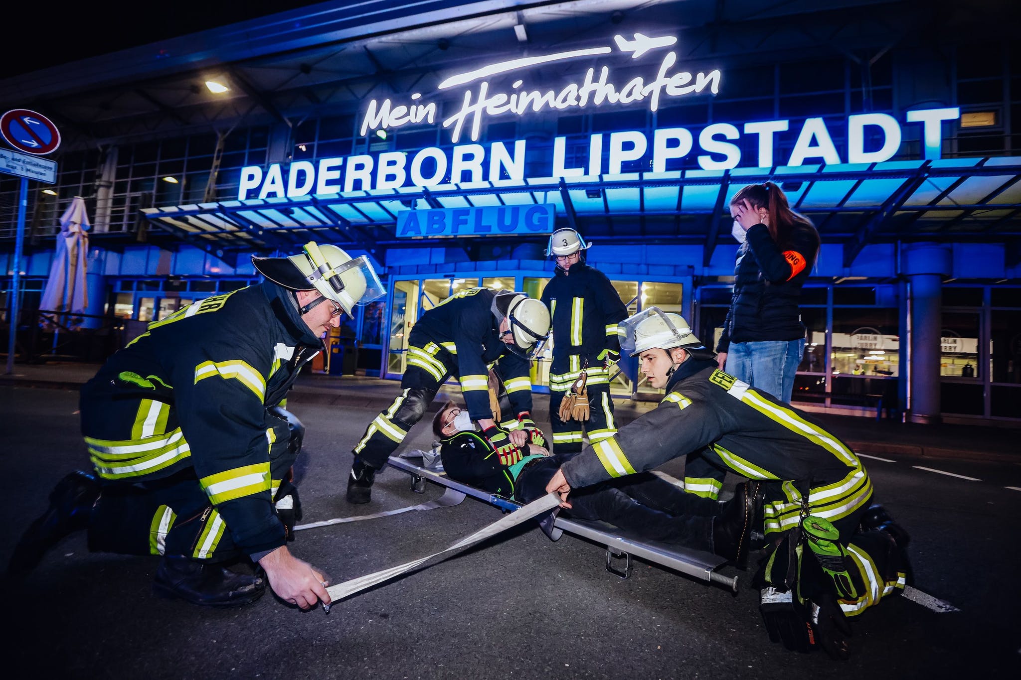 Übung Großalarm am Flughafen Paderborn: Feuerteufel sorgt für Turbulenzen – zum Glück nur eine Übung.