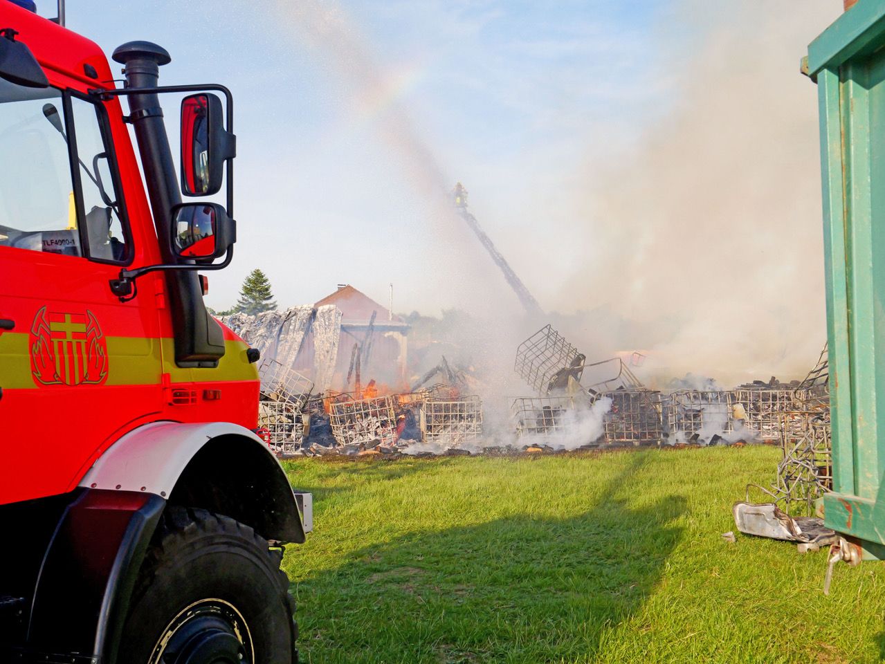 Großeinsatz für die Paderborner Feuerwehr am frühen Mittwochabend in Paderborn. Sie wurde um 18.36 Uhr zunächst zu einem kleineren Brand unter dem Stichwort „brennt landwirtschaftliches Gerät“ Uhr zu einem landwirtschaftlichen Anwesen in Benhausen alarmiert, in dem eine Hausschlachterei und Garten- und Landschaftsbaubetrieb untergebracht sind.