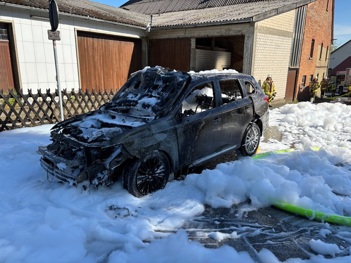 Auf dem Mühlenweg in Altenbeken-Buke hat am späten Mittwochnachmittag, 14. Mai, ein Auto gebrannt. Grund ist wahrscheinlich ein technischer Defekt.