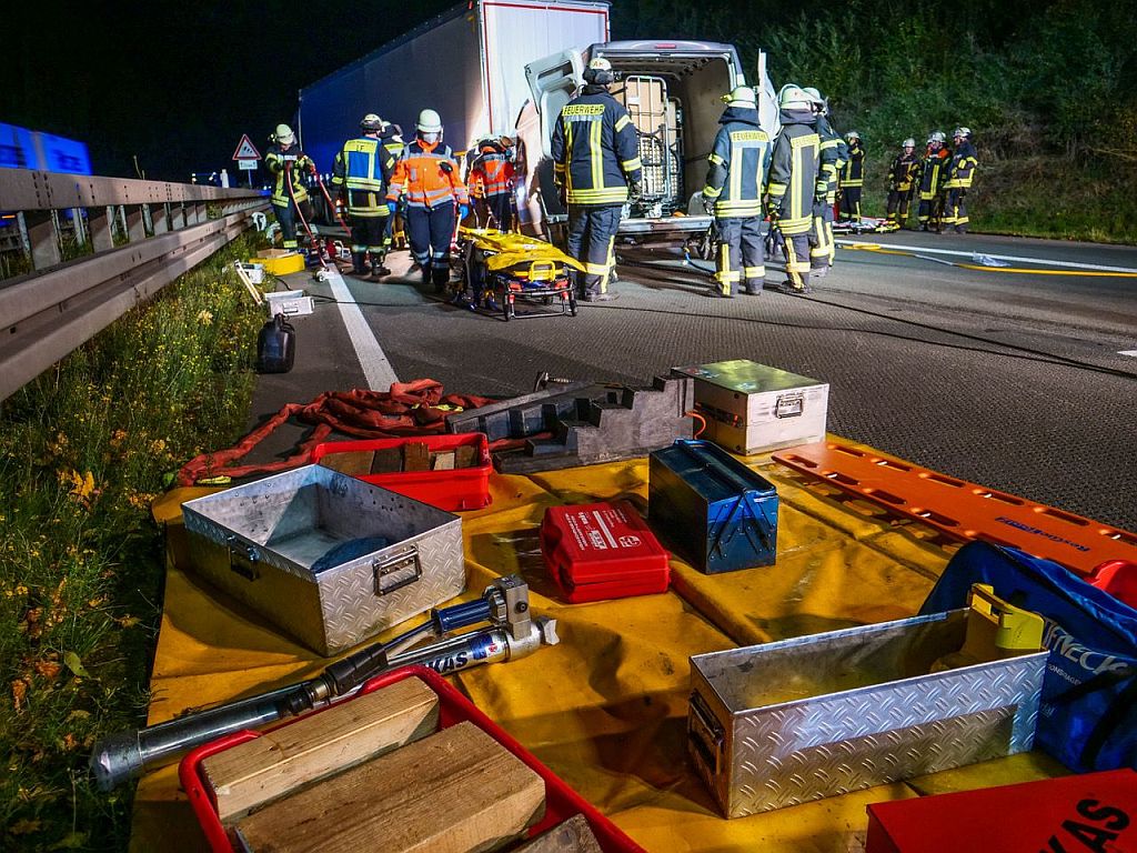 Bei einem schweren Verkehrsunfall auf der A 44 wurden am Mittwochabend drei Lkw-Fahrer verletzt, zwei von ihnen schwer. Eine Unfallzeugin erlitt einen Schock. Der Unfall ereignete sich gegen 22.25 Uhr auf der Richtungsfahrbahn Dortmund in Höhe des Bad Wünnenberger Stadtteils Helmern.