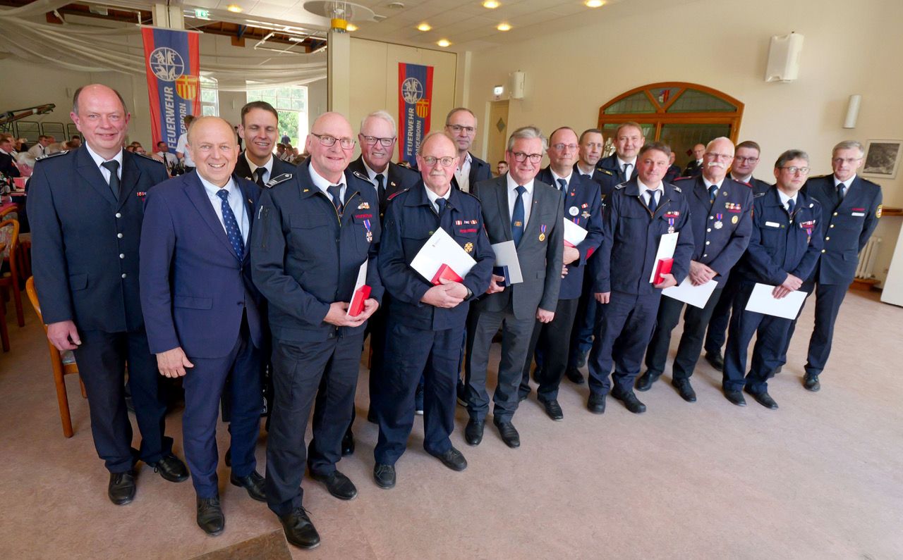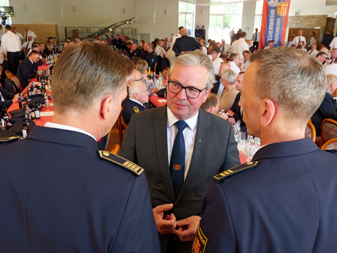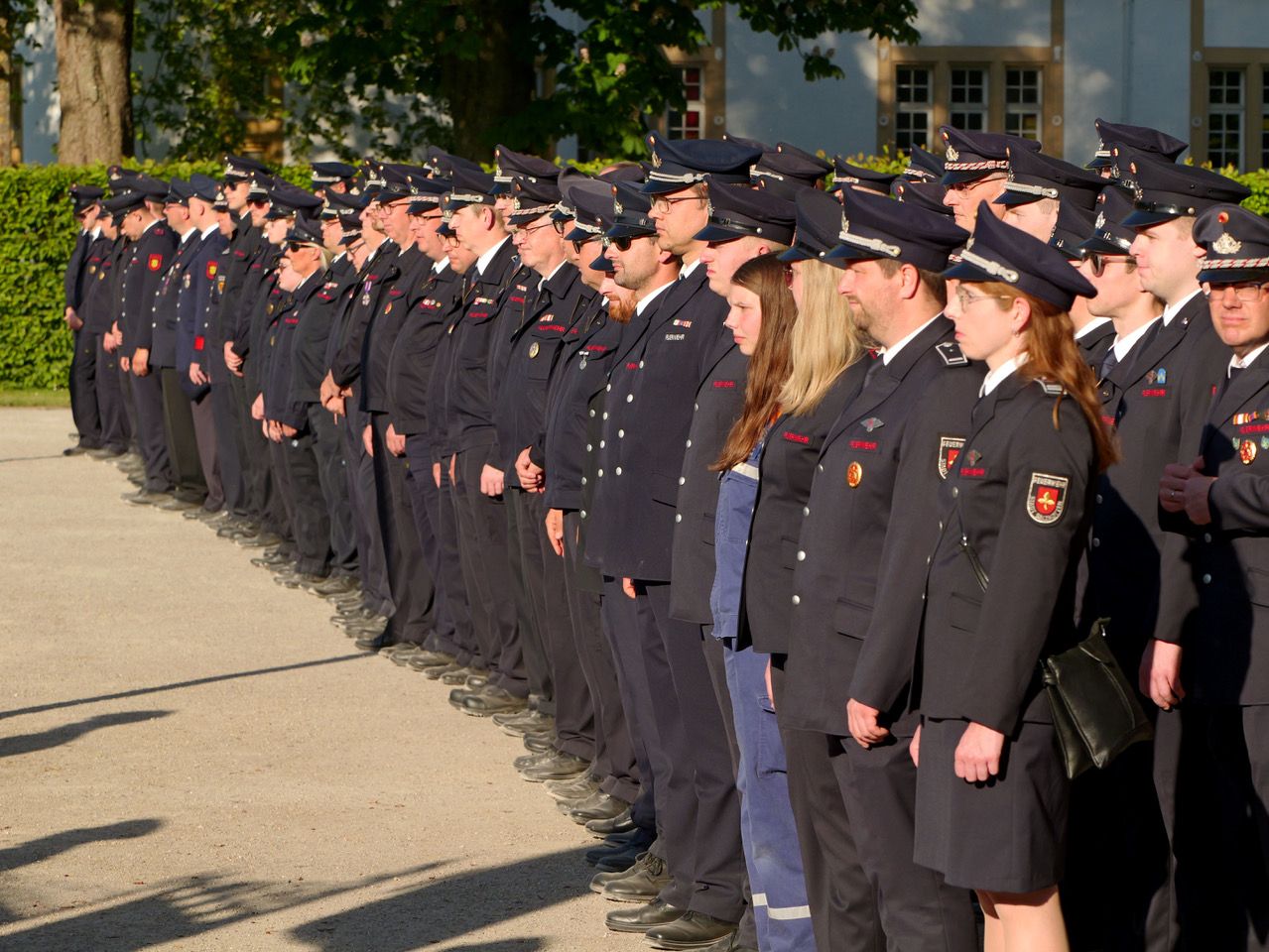 Rund 250 Delegierte und Gäste der Verbandsversammlung des Verbandes der Feuerwehr (VdF) im Kreis Paderborn gratulierten am Samstagnachmittag in der Schlosshalle im Neuhäuser Schlossgarten der Feuerwehr Paderborn zum 150-jährigen Bestehen.