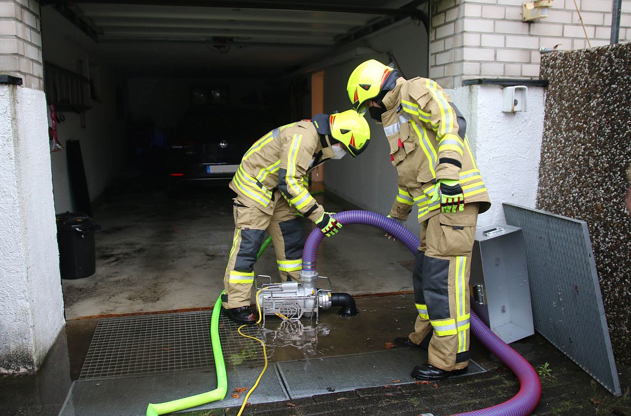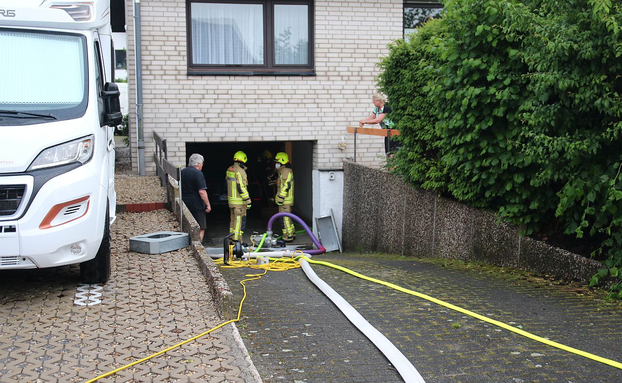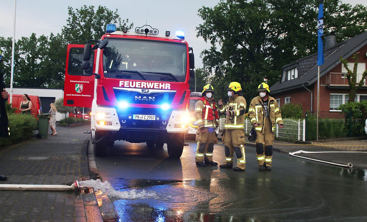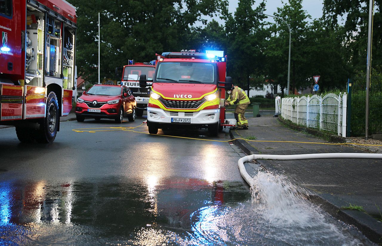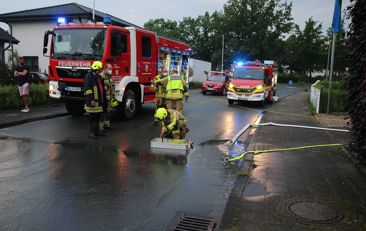 60 Kameraden pumpen in Delbrück-Bentfeld bis in die Nacht Keller aus. Feuerwehr nach Starkregen in Paderborn und Delbrük im Dauereinsatz.