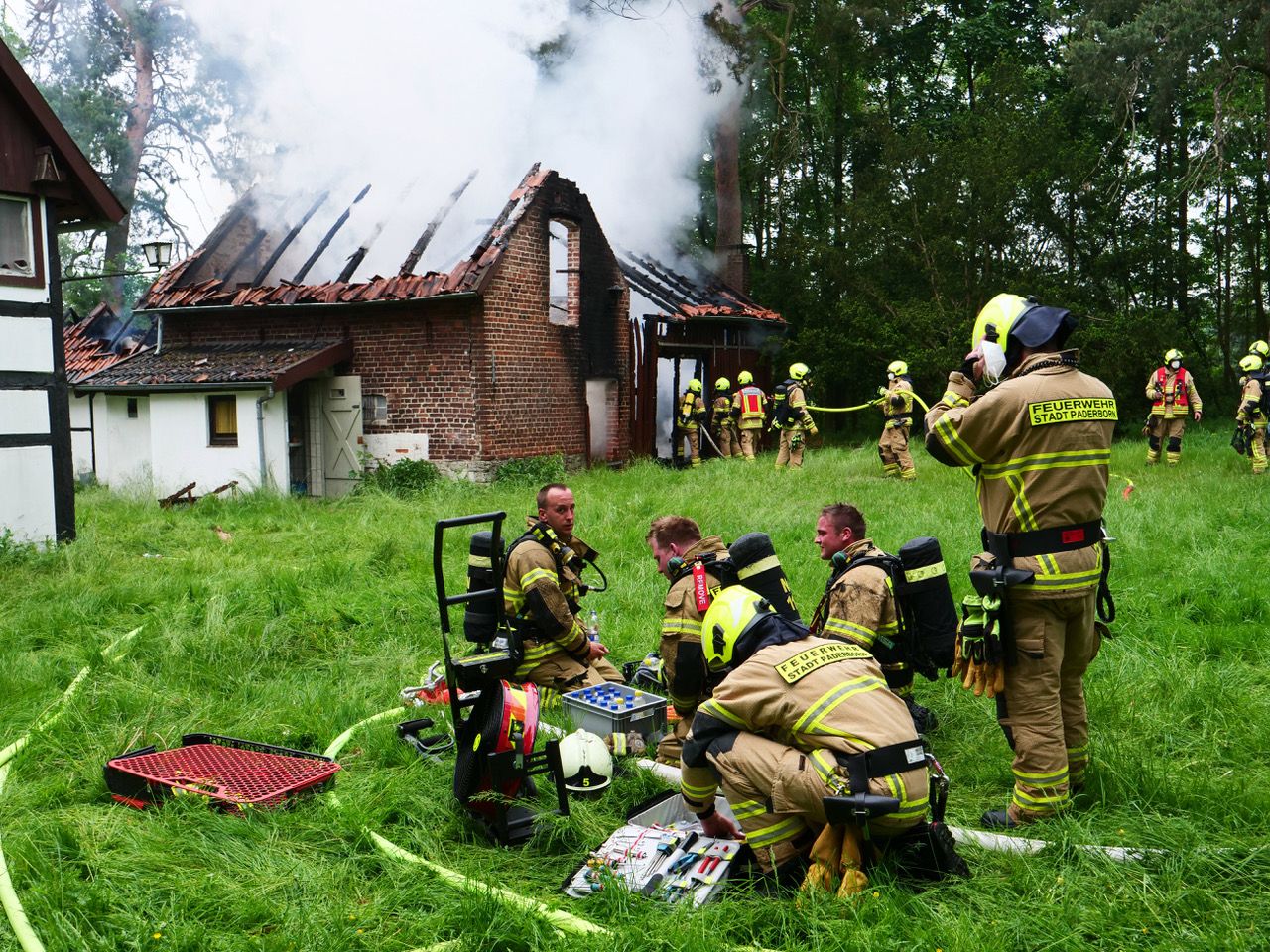 Unbekannte Brandstifter haben auf einer leerstehenden Hofstelle am Schatenweg im Mastbruch mehrfach Feuer gelegt. Zwei Gebäude brannten nieder, im Haupthaus gelang es der Paderborner Feuerwehr einen Entstehungsbrand rechtzeitig zu löschen.