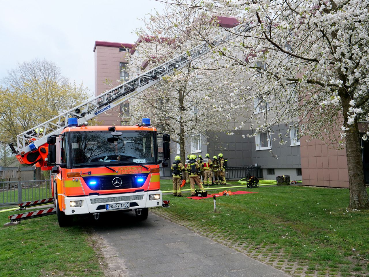 Rund 25 Einsatzkräfte der Paderborner Feuerwehr rückten am späten Dienstagnachmittag zu einem Zimmerbrand ins Riemekeviertel aus.