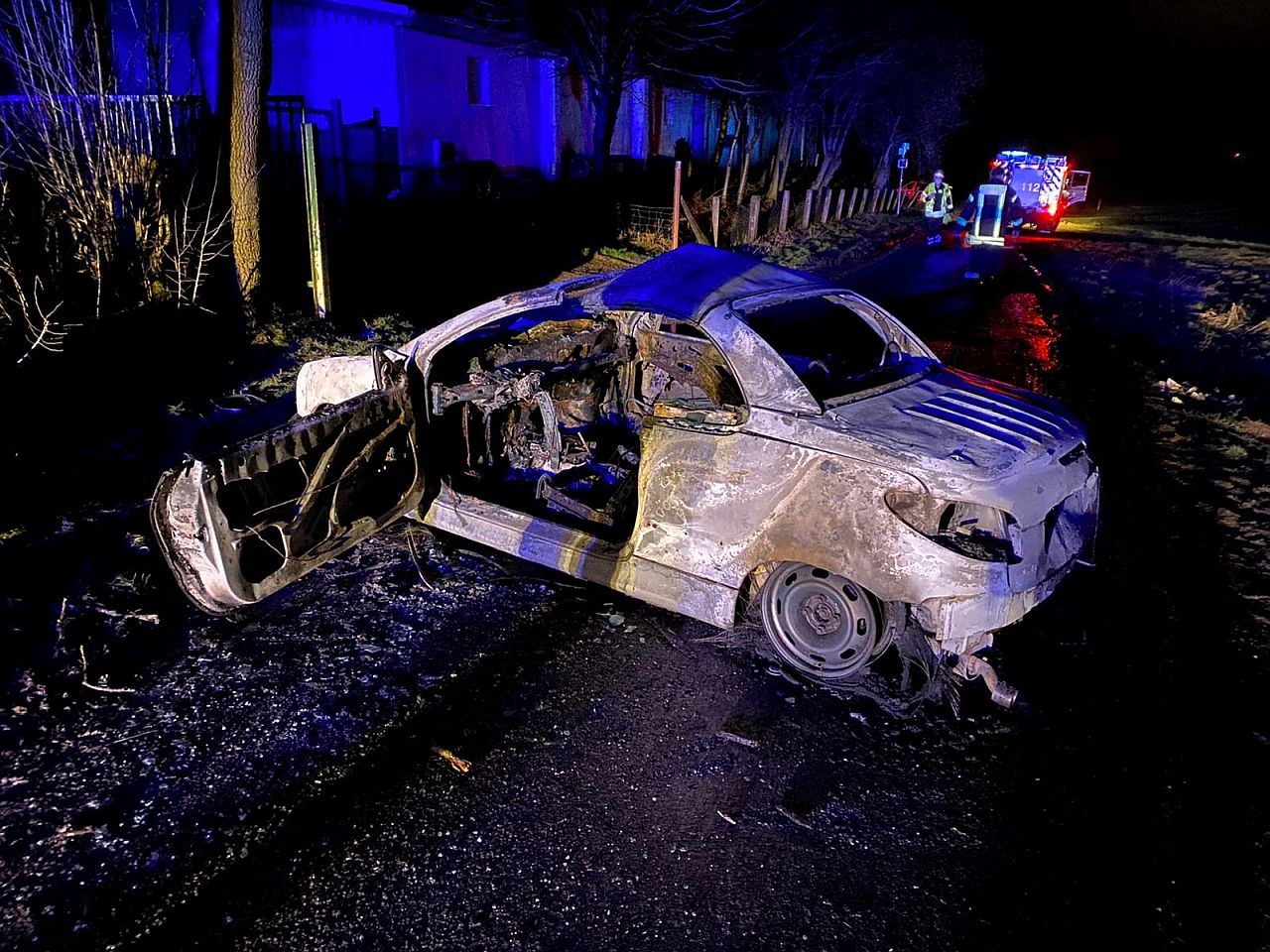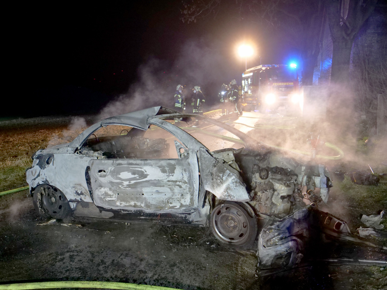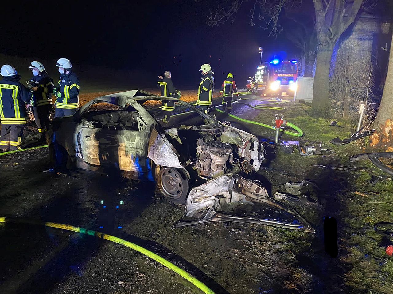 Verkehrsunfall in Dörenhagen. PKW-Vollbrand nach schwerem Verkehrsunfall.