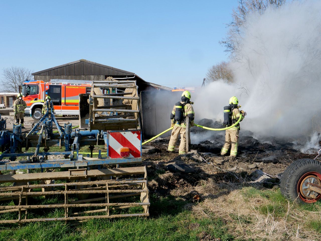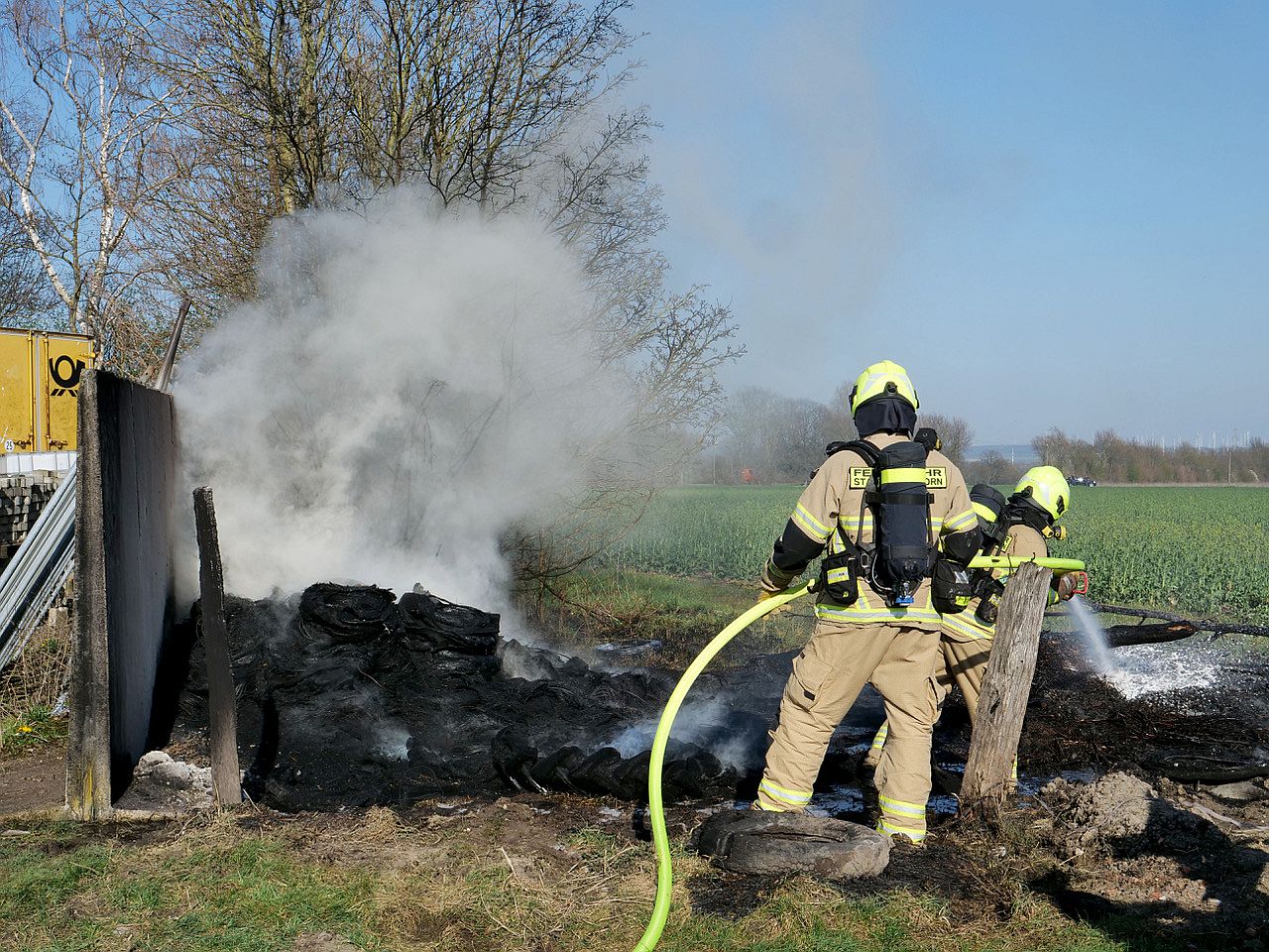 Reifen und Holz, die auf einem landwirtschaftlichen Anwesen am Scharmeder Stadtweg im Stadtteil Elsen gelagert waren, gerieten am Mittwochnachmittag aus unbekannter Ursache in Brand.
