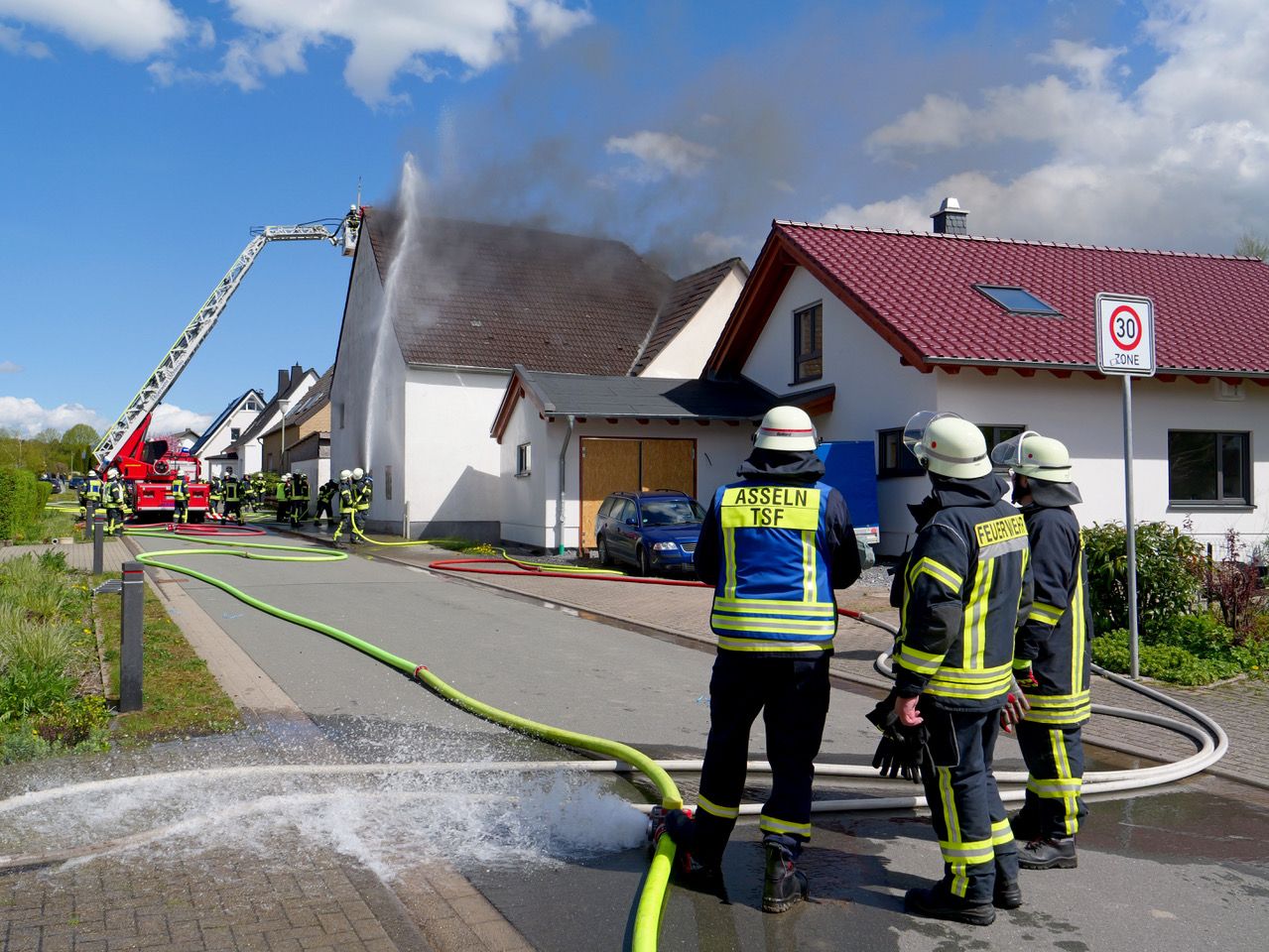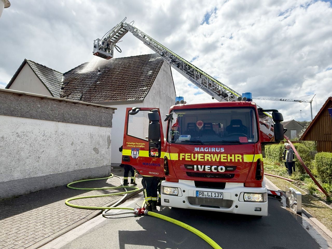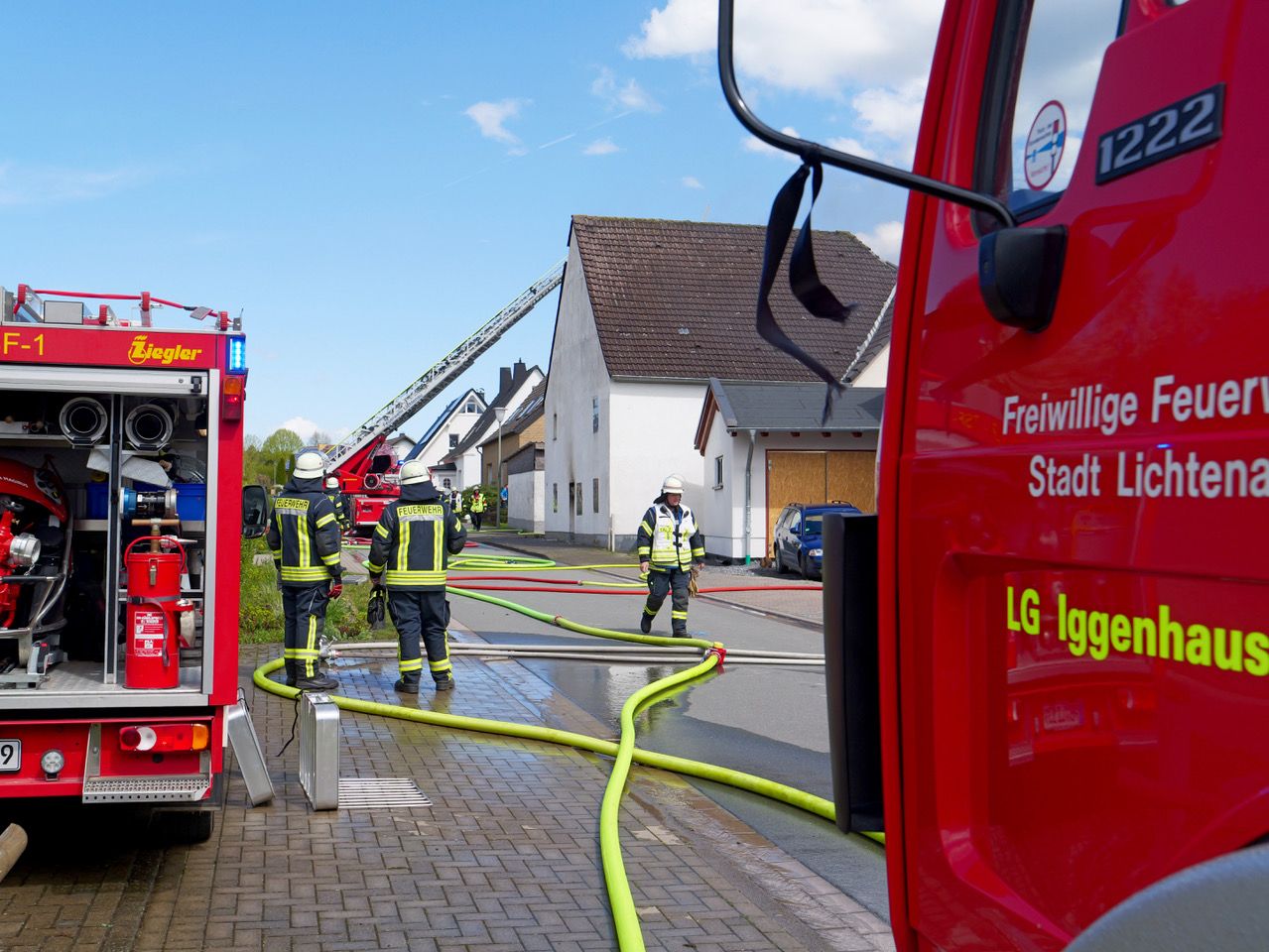 Der Notruf aus dem Lichtenauer Stadtteil Herbram war knapp und präzise: „Es brennt“, sagte die Anruferin und legte auf. Die meisten Fahrzeuge von sechs Lichtenauer Einheiten konnten auf Sicht fahren, denn über der Straße „Zum Emderwald“ stiegen dunkle Rauchwolken in den Himmel. In der ruhigen Stichstraße am westlichen Rand Herbrams brannte ein zweigeschossiger, landwirtschaftlich genutzter Anbau, der unmittelbar an ein ebenfalls zweigeschossiges Wohngebäude angrenzte.