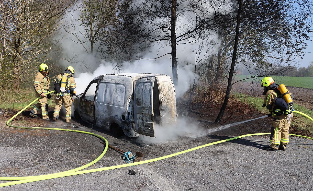 Feuer greift auf Vegetation über. Renault Kangoo geht in Flammen auf.