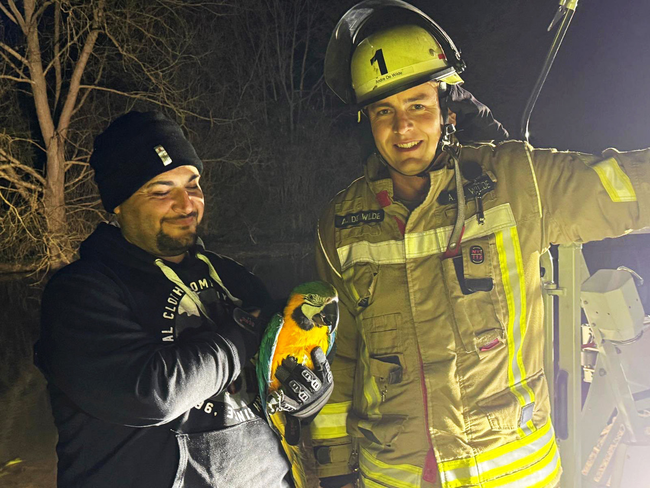 Mit schwerer Technik rückten Einsatzkräfte des Löschzuges Büren der Feuerwehr Büren am Freitagabend gegen 20 Uhr zu einer Tierrettung in die Bürener Almeauen aus. Dort hatte es sich ein entflogener Gelbbrust-Ara in einem hohen Baum bequem gemacht und weigerte sich beharrlich, sein Ausguck in luftiger Höhe zu verlassen.
