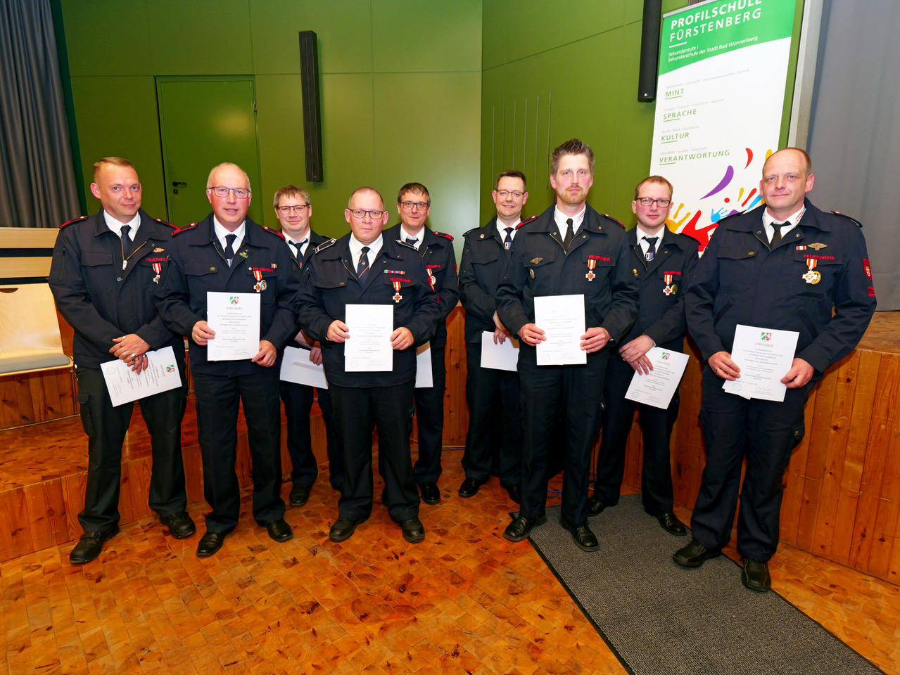 Bilanz eines einsatzreichen Jahres zog die 409 Mitglieder zählende Feuerwehr Bad Wünnenberg bei ihrer Jahreshauptversammlung in der Fürstenberger Profilschule. Im vergangenen Jahr rückten die 256 Aktiven der sieben Einheiten zu 285 Einsätzen aus. Obwohl die Einsatzzahl nur knapp unter dem Rekordwert von 2023 lag, bliebt die 12.500 Einwohner zählende Stadt im vergangenen Jahr von größeren Einsätzen verschont, berichtet Schriftführer und Pressesprecher Christoph Hesse.