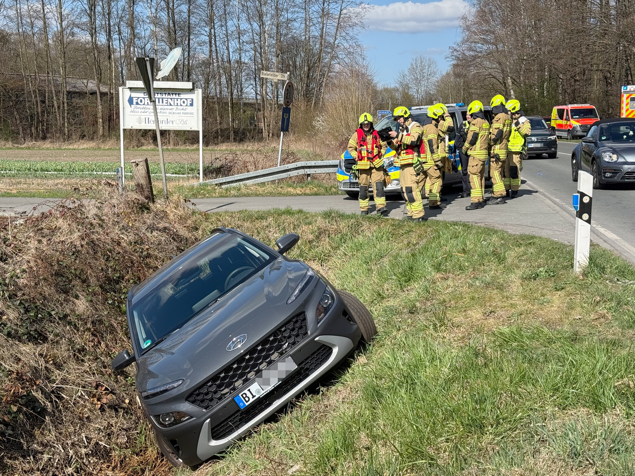 Unfreiwillig im Graben landete Samstagmittag ein Bielefelder Autofahrer auf der Bielefelder Straße im Stadtteil Sennelager. Gegen 11.25 Uhr geriert er kurz hinter der Anschlussstelle Sennelager auf der Fahrt in Richtung Ortskern nach rechts auf die Bankette.