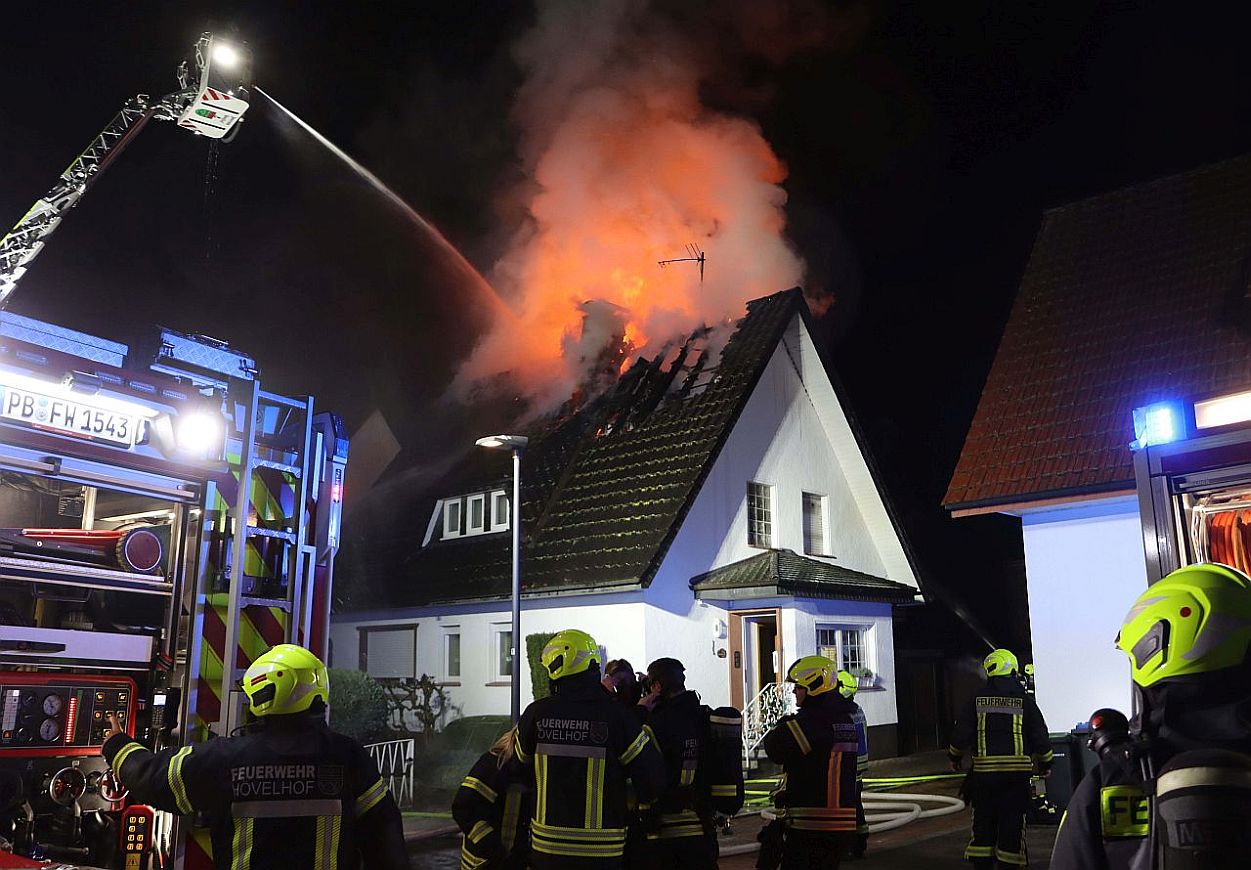 Einsatz in den Abendstunden des 2. Weihnachtsfeiertages. Großbrand in Hövelhof: Dachstuhl steht in Flammen.