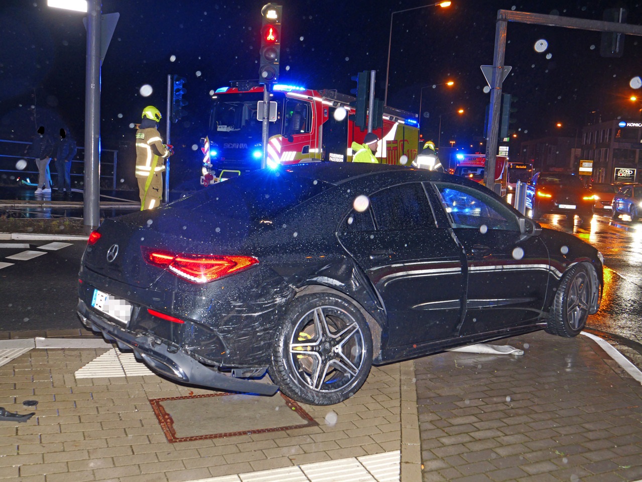 Beim Zusammenstoß von zwei Personenwagen auf der Kreuzung Bahnhofstraße/Salzkottener Straße mit dem Frankfurter Weg und dem Heinz-Nixdorf-Ring wurden am späten Samstagabend alle drei Insassen verletzt und wurden nach notärztlicher Versorgung mit drei Rettungswagen in Paderborner Krankenhäuser eingeliefert.